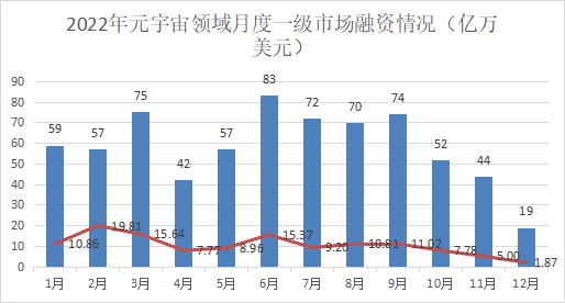 2)截止2022年底,全球元宇宙项目融资共704笔,融资额124亿美元;下图为截止2020年底,元宇宙一级市场融资情况,柱状为项目数,折线为融资额,单位(亿美元);