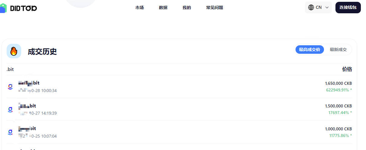 在传统互联网时期,域名抢注造就了一批富翁,而区块链域名诞生以来也不乏高价成交的案例。比如如‘000.eth’ENS域名以300ETH的价格成交,opensea.eth以99.89 ETH价格成交等等。如果你的眼光比较好,注册的.bit域名也许可以卖一个好价钱。