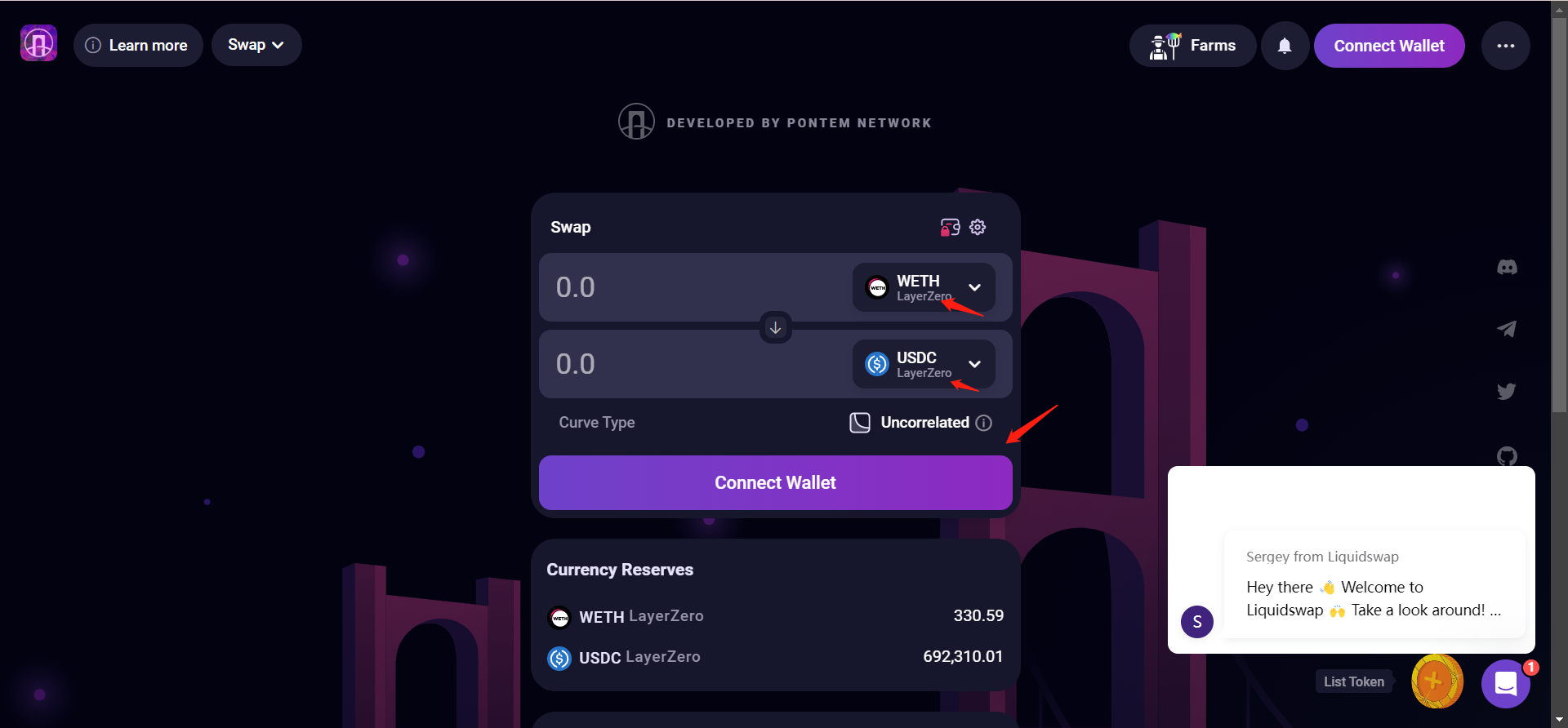 跨链完成后,在swap进行几笔简单的交易,记得先swap点gas