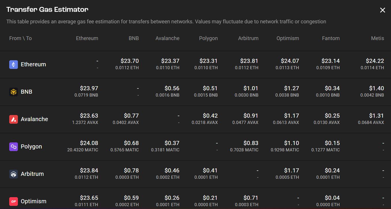 Arbitrum→Fantom($0.27)→Polygon($0.08)→Avalanche($0.36)→Arbitrum($0.86) Fantom→BNB($0.8)→Polygon($0.43) fantom→Optimism ($0.86)→Polygon($0.14)
