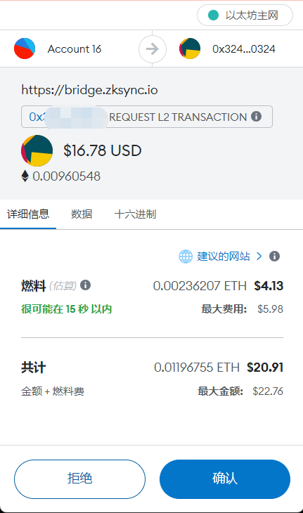 所以在做zksync上,由于注意官方跨链,前几个月gas太高,我们使用小飞碟等其他跨链都可以,但是官方桥一定不能忽视,这可能是一项权重,由于官方桥gas动辄10几20U,让人望而却步,用小飞碟却可以省下一周的猪脚饭,实在无法拒绝