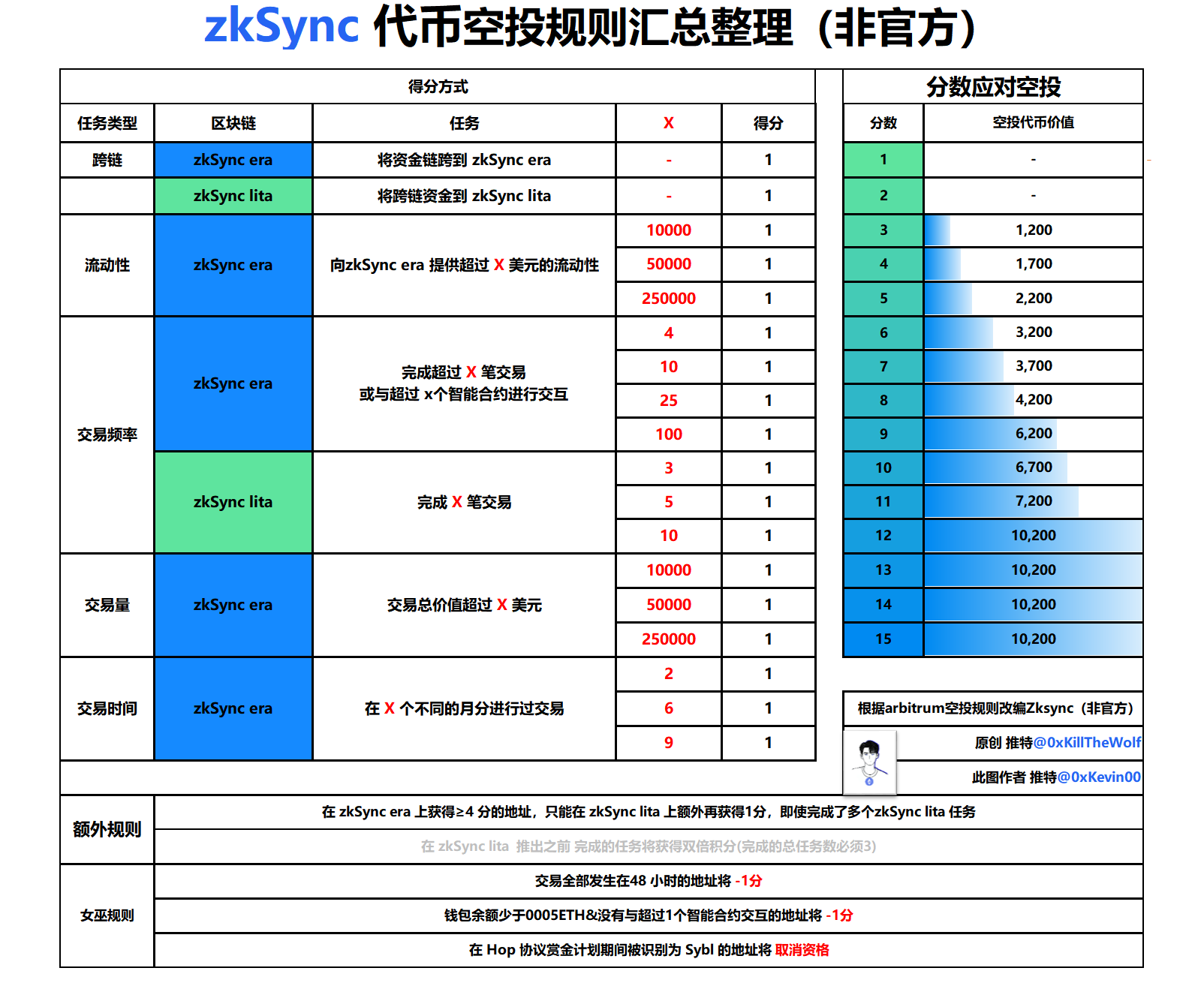 所以这里,我们将arbitrum的空投规则套入zkSync上(上图)