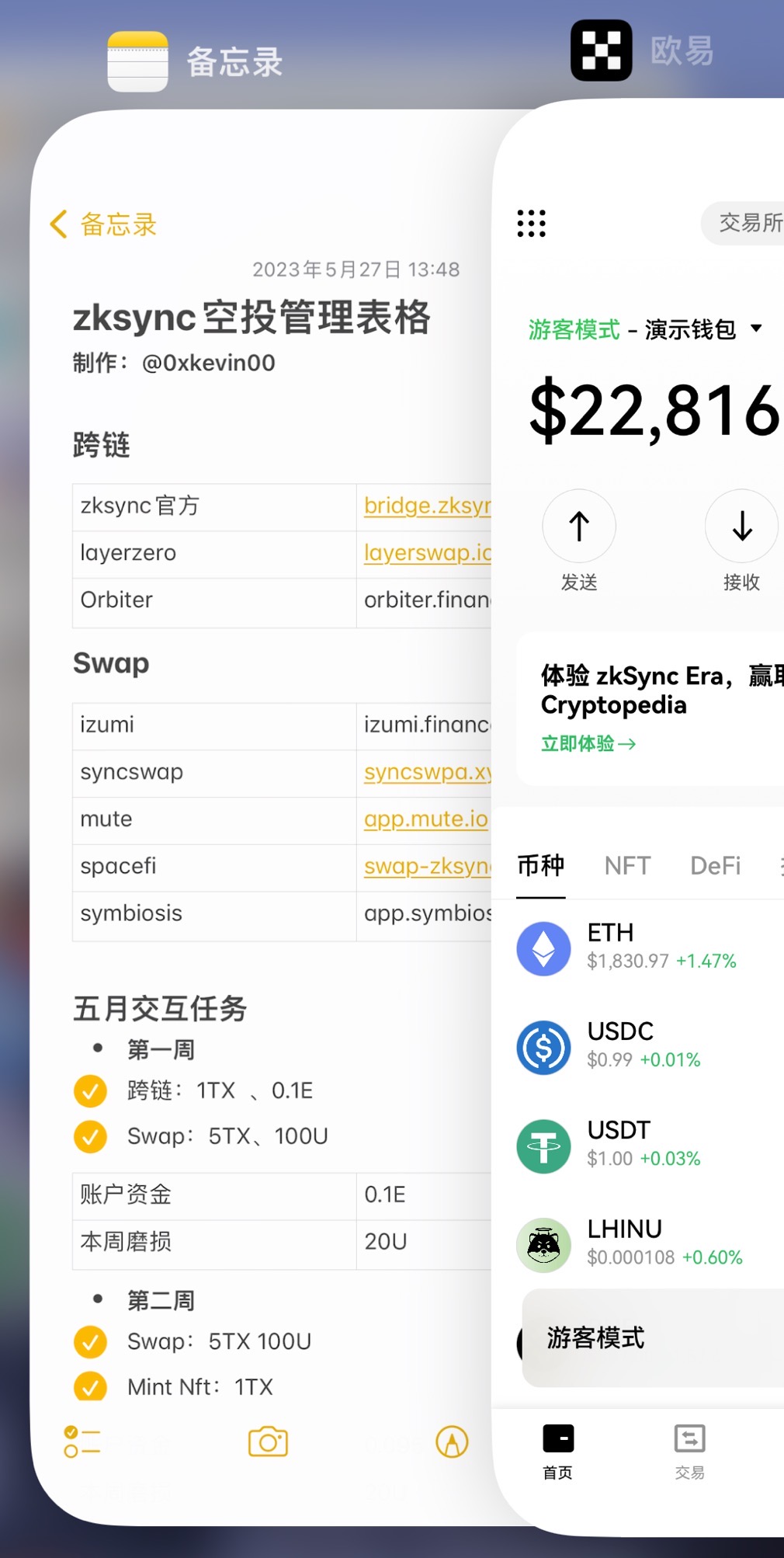 OKX Cryptopedia的15个任务基本就是涵盖了SWAP、Stake、Pool、NFT、Gamefi、ID这些真实用户操作,可以看出非常细节,工作室的账号一般都是固定的swap,每周每月去交互,而OKX设计了一套非常有意义的交互行为,手把手带你做一套精品号~