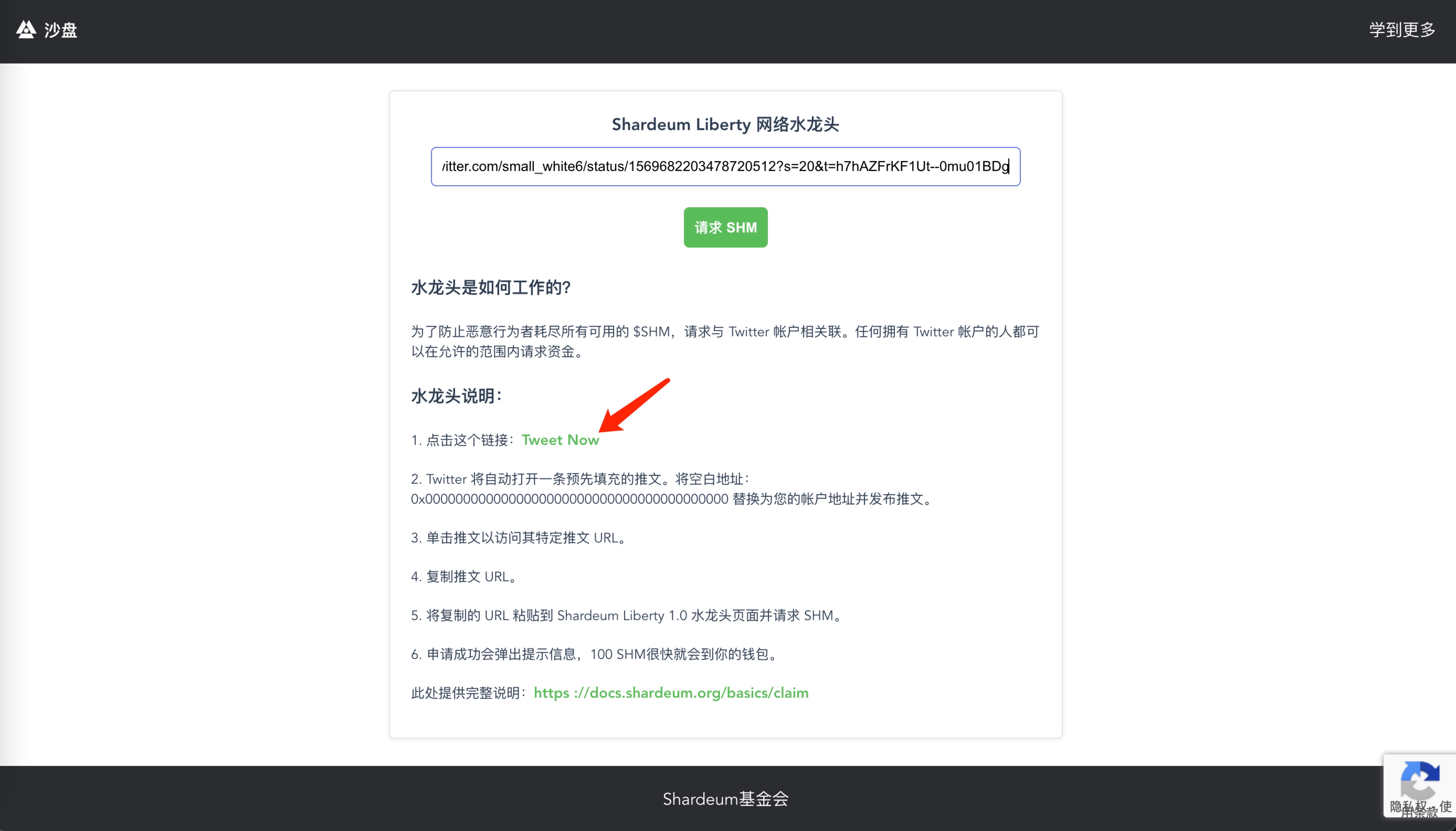 点击 Tweet Now 自动跳转到推特编辑好的推文,把0改成自己的钱包地址发送,然后复制连接点击请求代币。