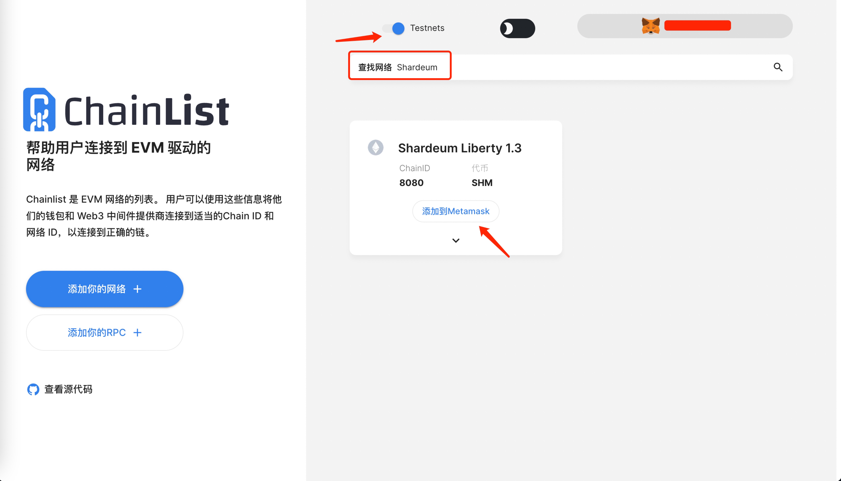 1 使用 chainlist 添加 Shardeum Liberty 1.3 网络