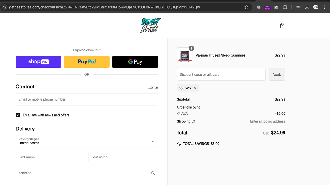 No checkout, insira o código Beast Bites Discount Code (AVA)