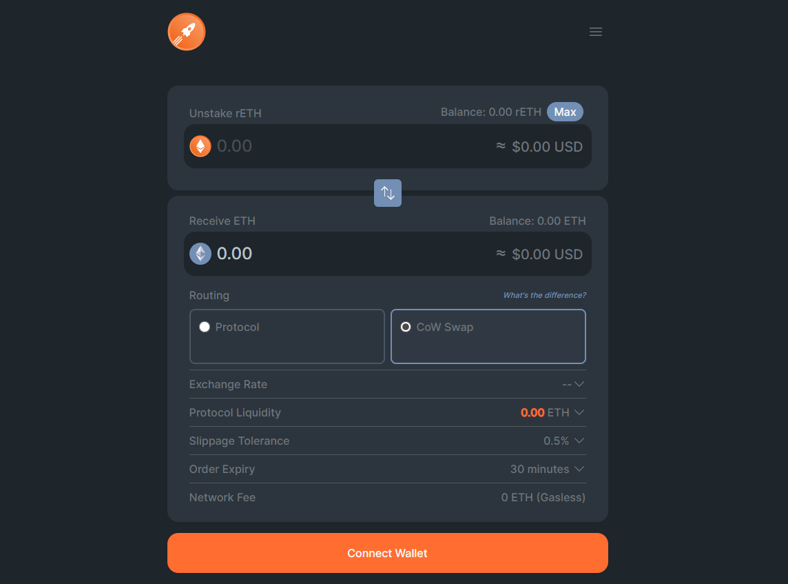 When you decide to unstake, the system allows you to return your rETH and withdraw ETH back to your wallet.