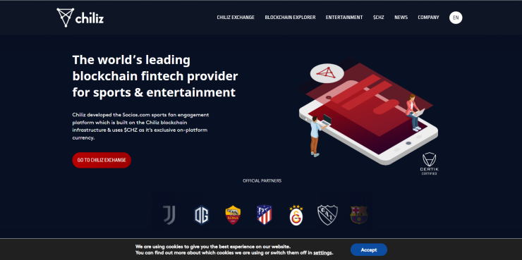 基于区块链的电子竞技投票平台 ChiliZ,是全球体育和娱乐公司 Mediarex Group 一部分。在该社区中,拥有粉丝 Token 的球迷可以对俱乐部的球衣颜色、体育场音乐和徽标、友谊比赛、慈善阵容、入场歌曲等方面的事宜进行投票,且投票结果具有约束力。强化了用户的社区参与。Socios.com 粉丝参与平台基于 Chiliz 的区块链基础架构建立,并使用 CHZ 作为平台原生通证。Socios.com 为一些最为知名的国际体育品牌提供其官方粉丝 Token,其中包括巴塞罗那、尤文图斯、巴黎圣日耳曼、AS 罗马、加拉塔萨雷、马德里竞技、OG、阿根廷独立竞技以及 UFC。