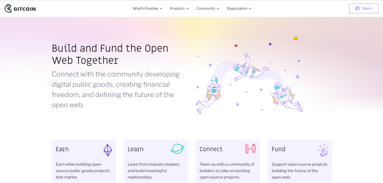 Gitcoin 是一个开源软件开发激励平台,其愿景是通过区块链支持各类开源项目,促进开源运动的发展。Gitcoin 为各种规模的开源项目提供了寻求资金的平台和获得资金的机会。在每轮的 Gitcoin 捐助活动中,除了各项目收到的捐款外,Gitcoin 还会以此作为参考协调以太坊基金会的基金分配以便让优质项目获得投资的机会增加。Gitcoin 旨在开源的以太坊悬赏平台,区块链项目可以于此用一定的报酬找到需要开发者,随着平台的发展延伸出了众筹资助、黑客马拉松、社交和教育属性等不同模块。