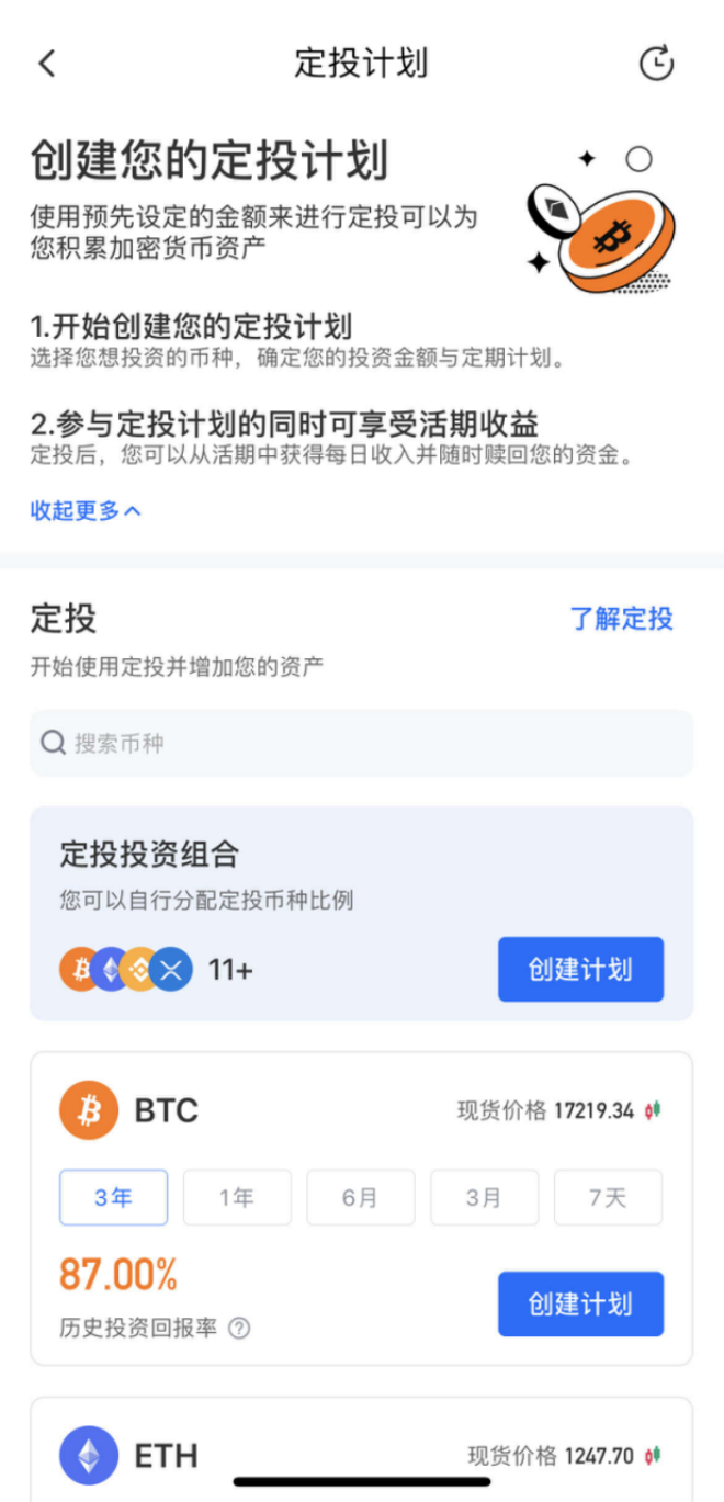 智能定投支持单币种定投,还支持多币种自由组合定投,币种比例自定,币种资产组合投资灵活。