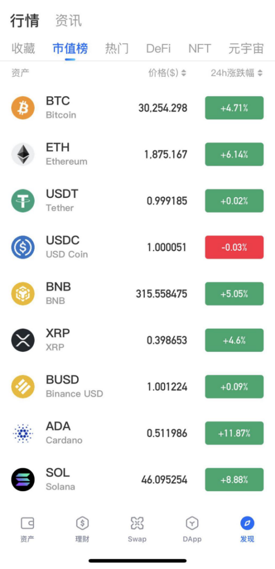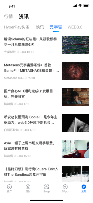 自管钱包是变化最大的,去中心化体验更完整,功能也更丰富,设置了资产,理财,swap,DApp,发现5大板块。