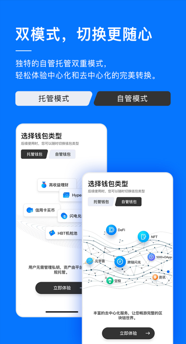 HyperPay 5.0最大的变化就是托管钱包和自管钱包变成独立模式,用户可以自由切换两种模式下的使用场景,满足更多样化的需求。