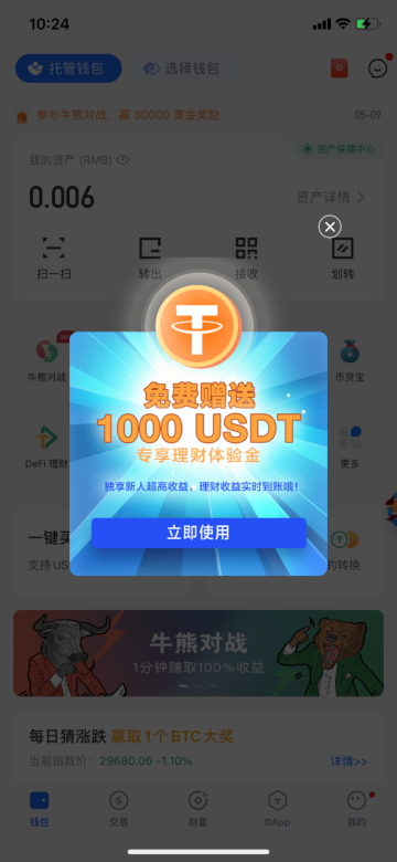 如果你是新用户,还可免费领取1000usdt理财体验金,并独享新人超高收益理财产品,年化收益达30%!