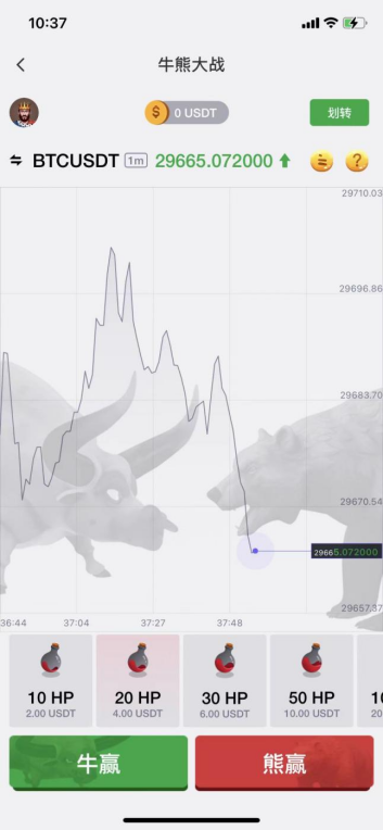 最近托管钱包还推出了牛熊对战产品,预测未来一分钟涨跌,“牛赢”或“熊赢”。不管大盘是涨是跌,都能赚到钱!