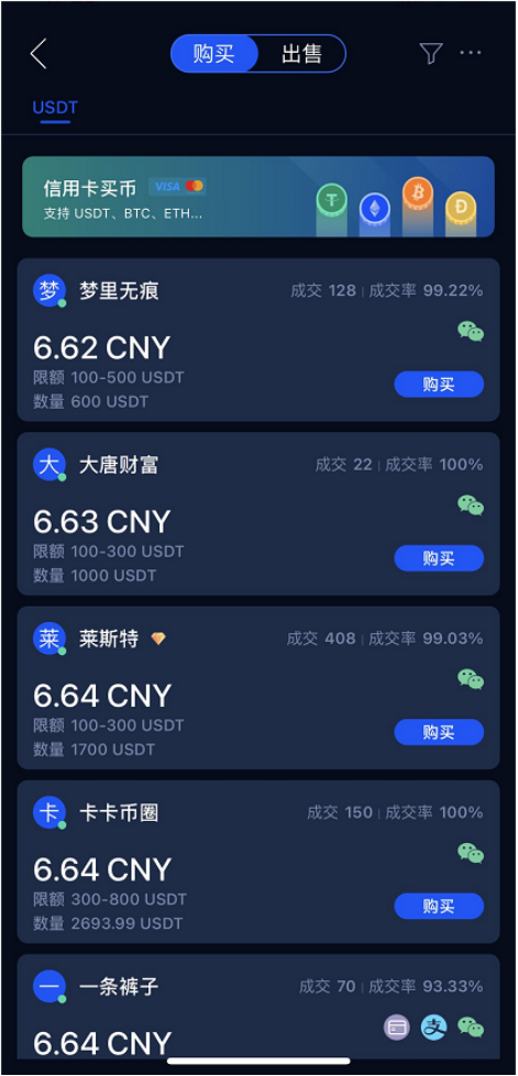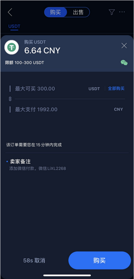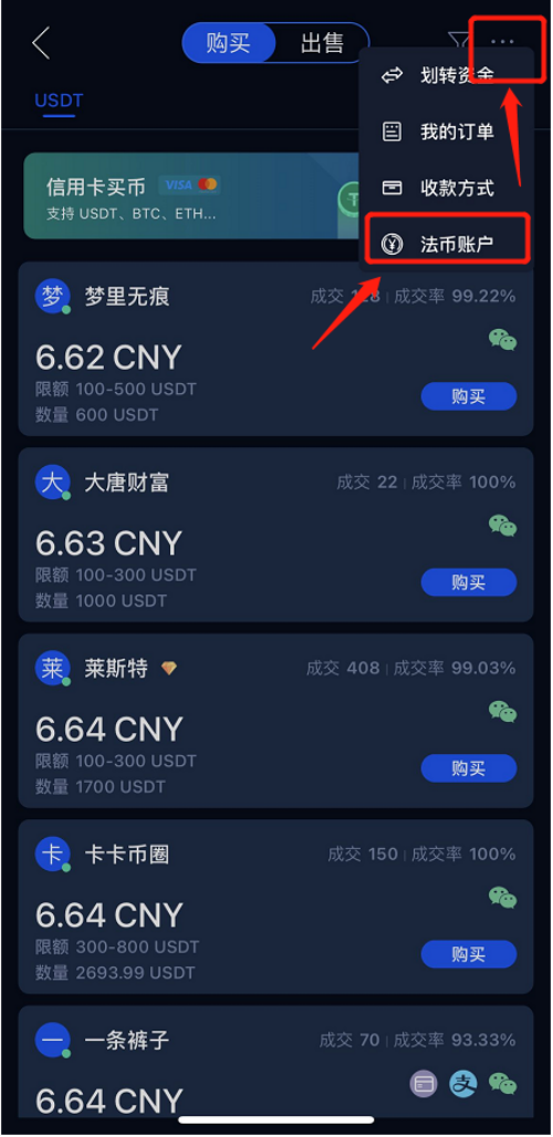 购买完毕后,用户点击右上角“...”查看自己的法币账户情况: