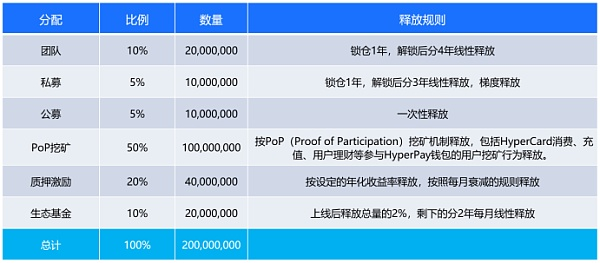 HyperPay钱包完成了之前的白皮书规划,现在朝着新的5年前进,我们的新使命是建立超级金融支付网络,融合Web2和Web3的优势,CeFi和DeFi齐头并进,为用户提供多元化金融服务内容。在此节点,HyperPay也向市场推出新的代币激励规划即首个Web5数字银行通证: