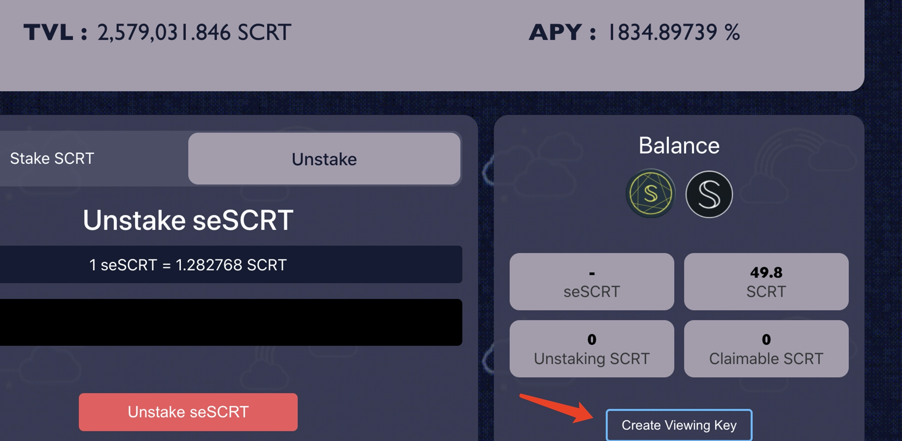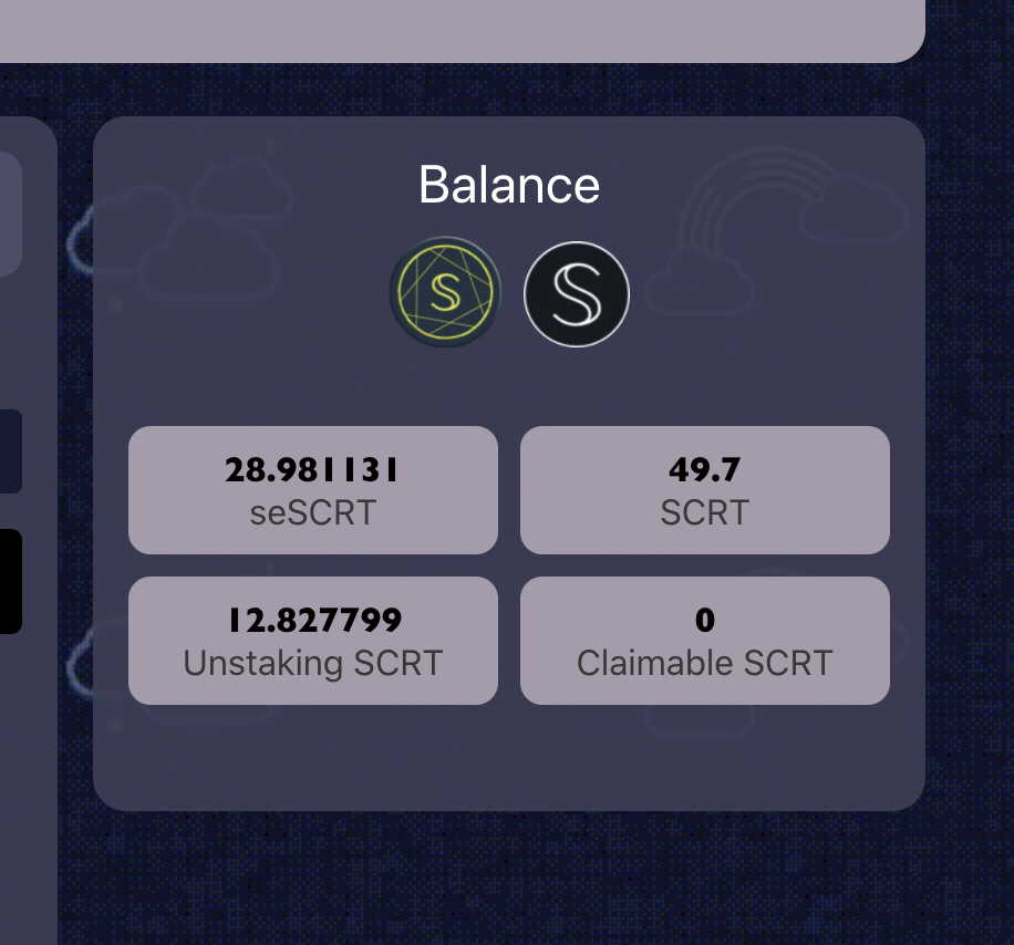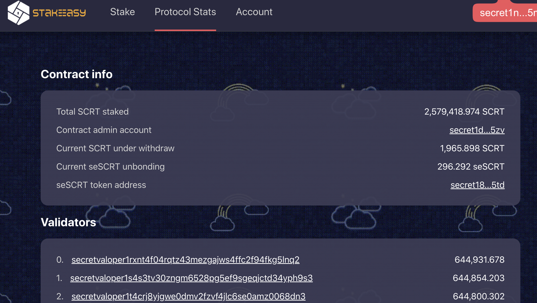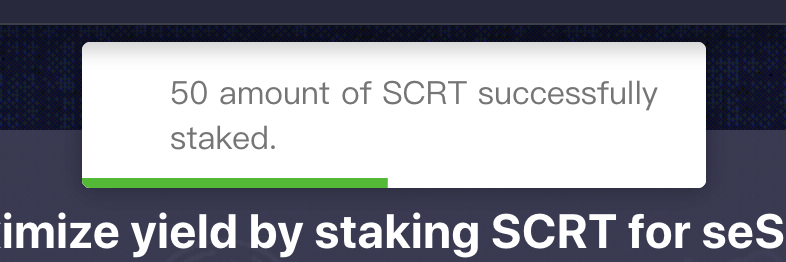 用户可以在 StakeEasy 上质押他们的 $SCRT 代币,并获得一个 SNIP-20 代币 $seSCRT 作为回报,随着质押奖励在平台上累积,价值会增加。$seSCRT 可以转移到另一个钱包,也可以在 DeFi 协议中用于提供流动性或用作抵押品。