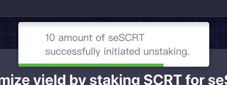 有 21 天的锁定期,一旦 $SCRT 被委托,在委托期间就不能在其他地方使用。StakeEasy 为用户提供立即取消质押的能力。