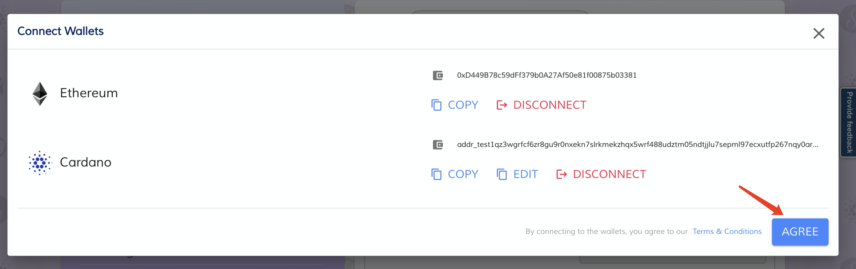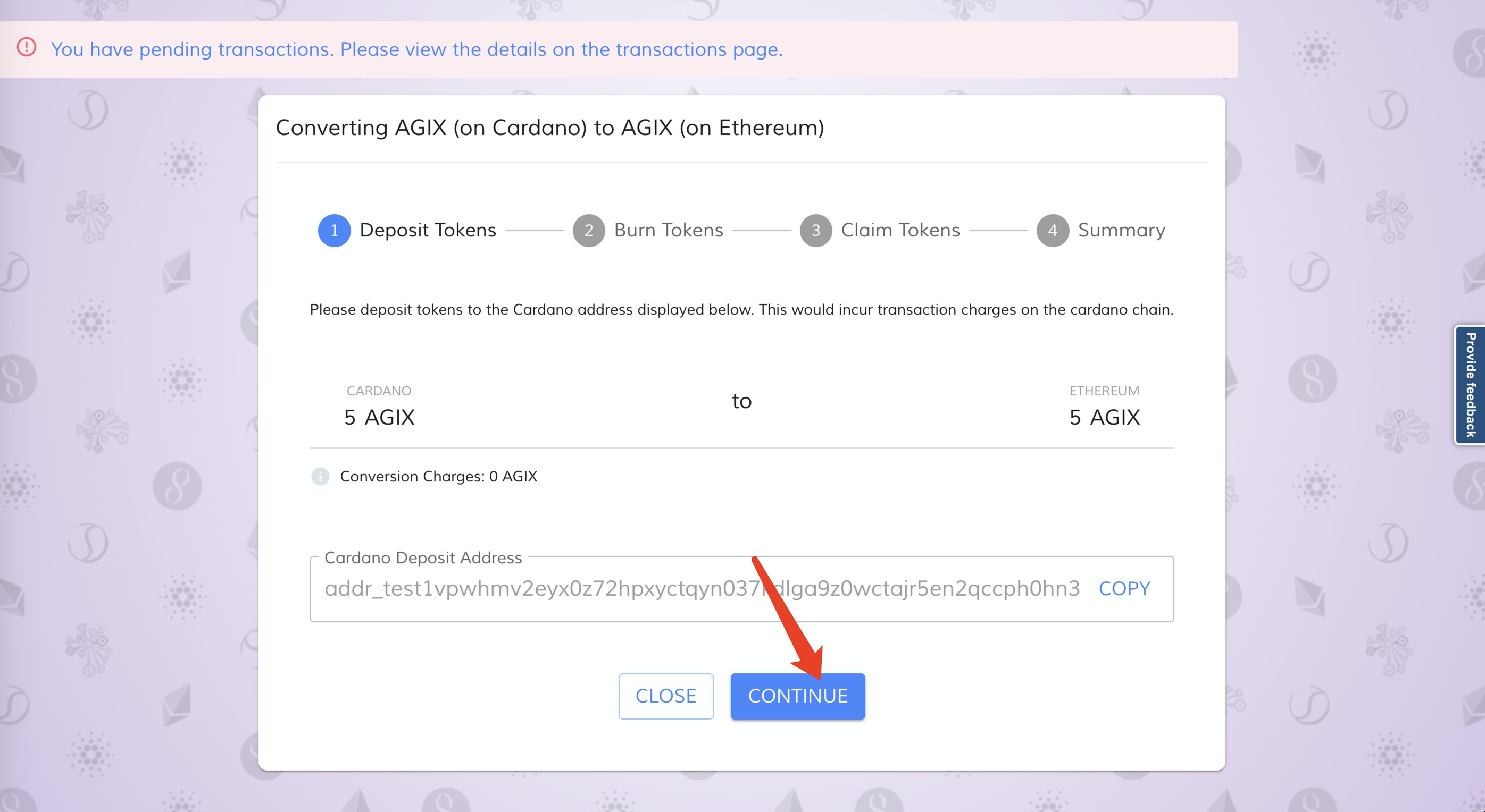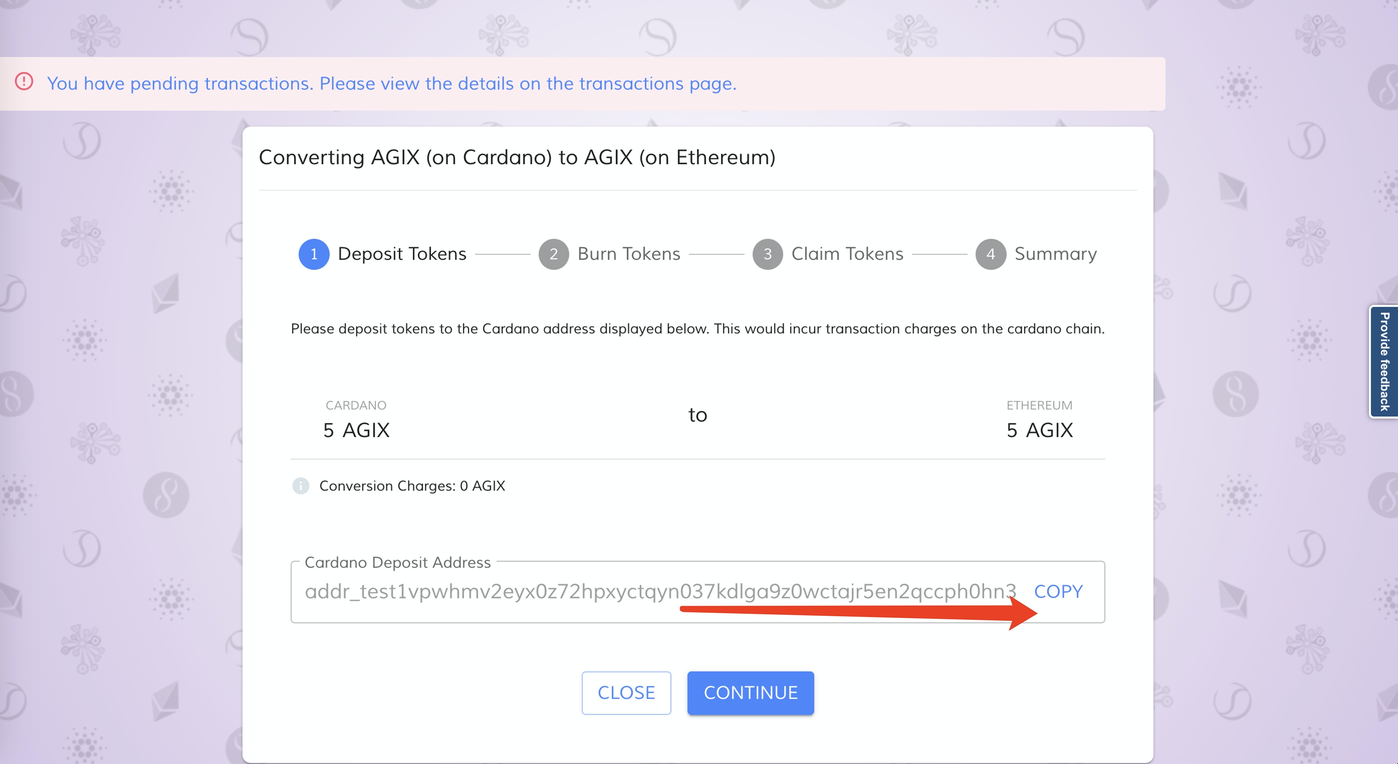 复制一下这个钱包地址,然后将相同数量的AGIX发送到钱包地址。