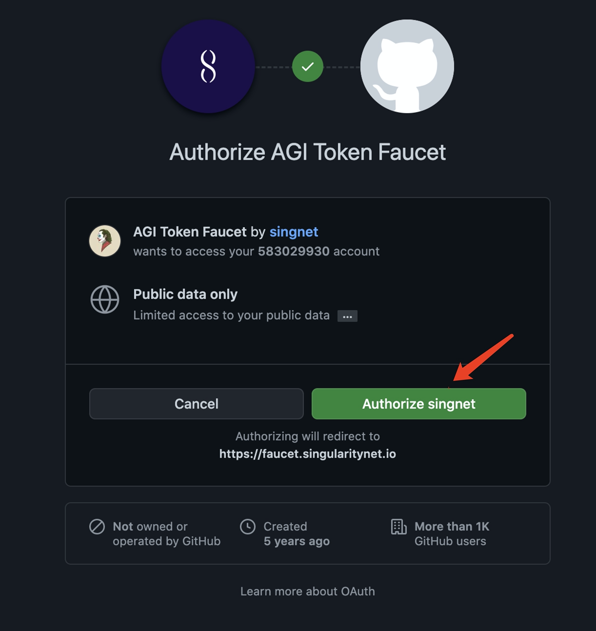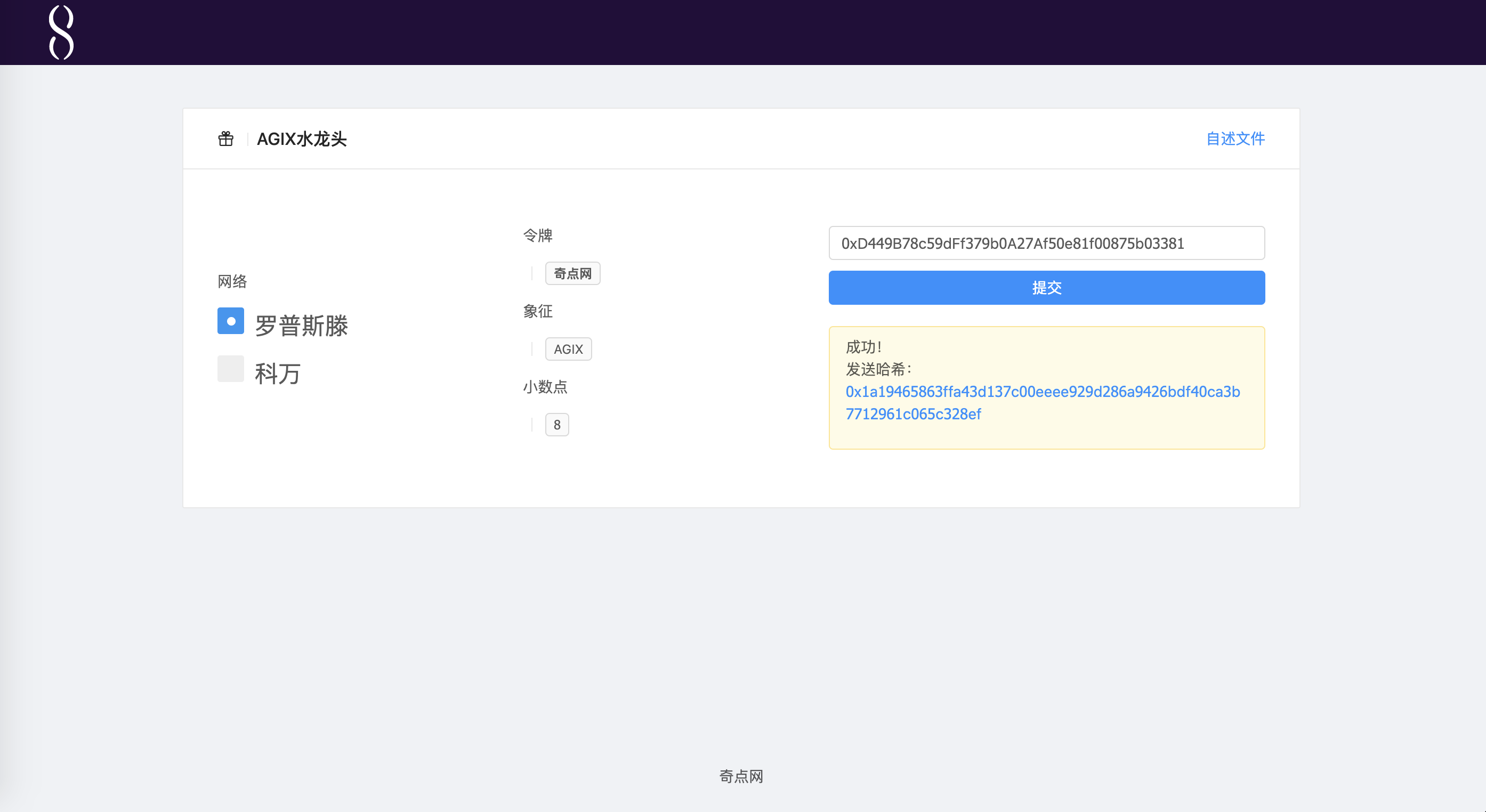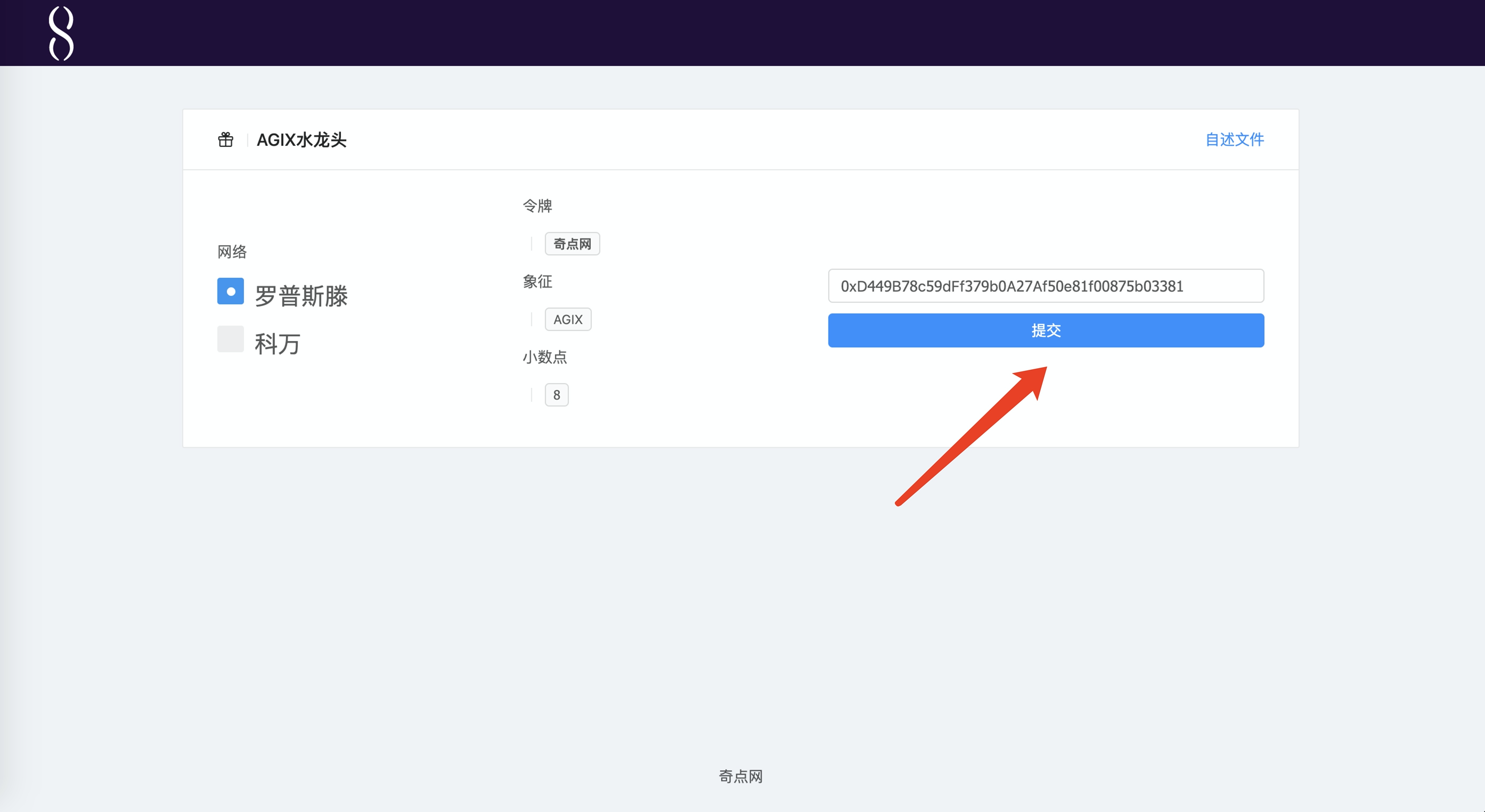 5 领取Ropsten AGIX令牌,使用GitHub账号登录,然后填写钱包地址提交。(没有账号的自己注册一下)