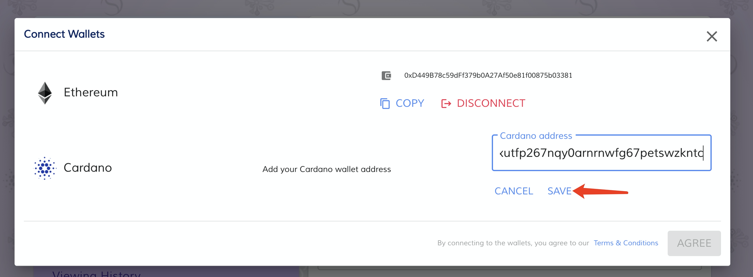 7 点击ADD,输入Nami钱包地址 然后点击SAVE