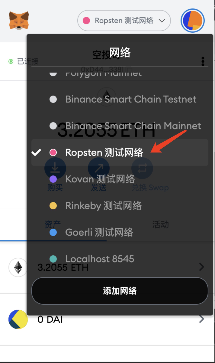 切换到测试网络