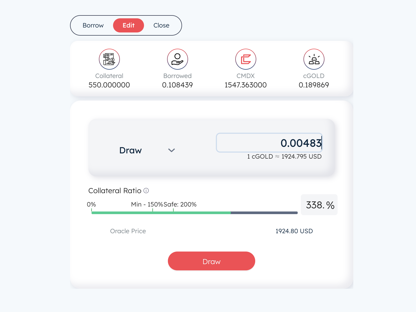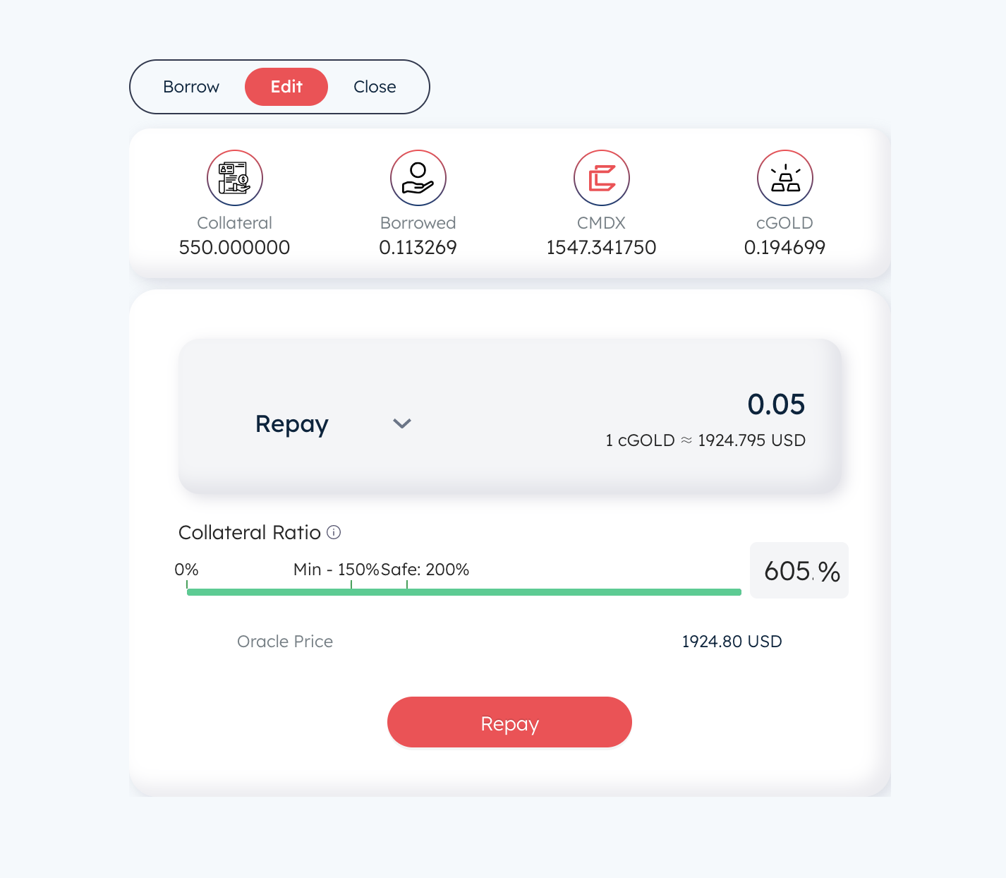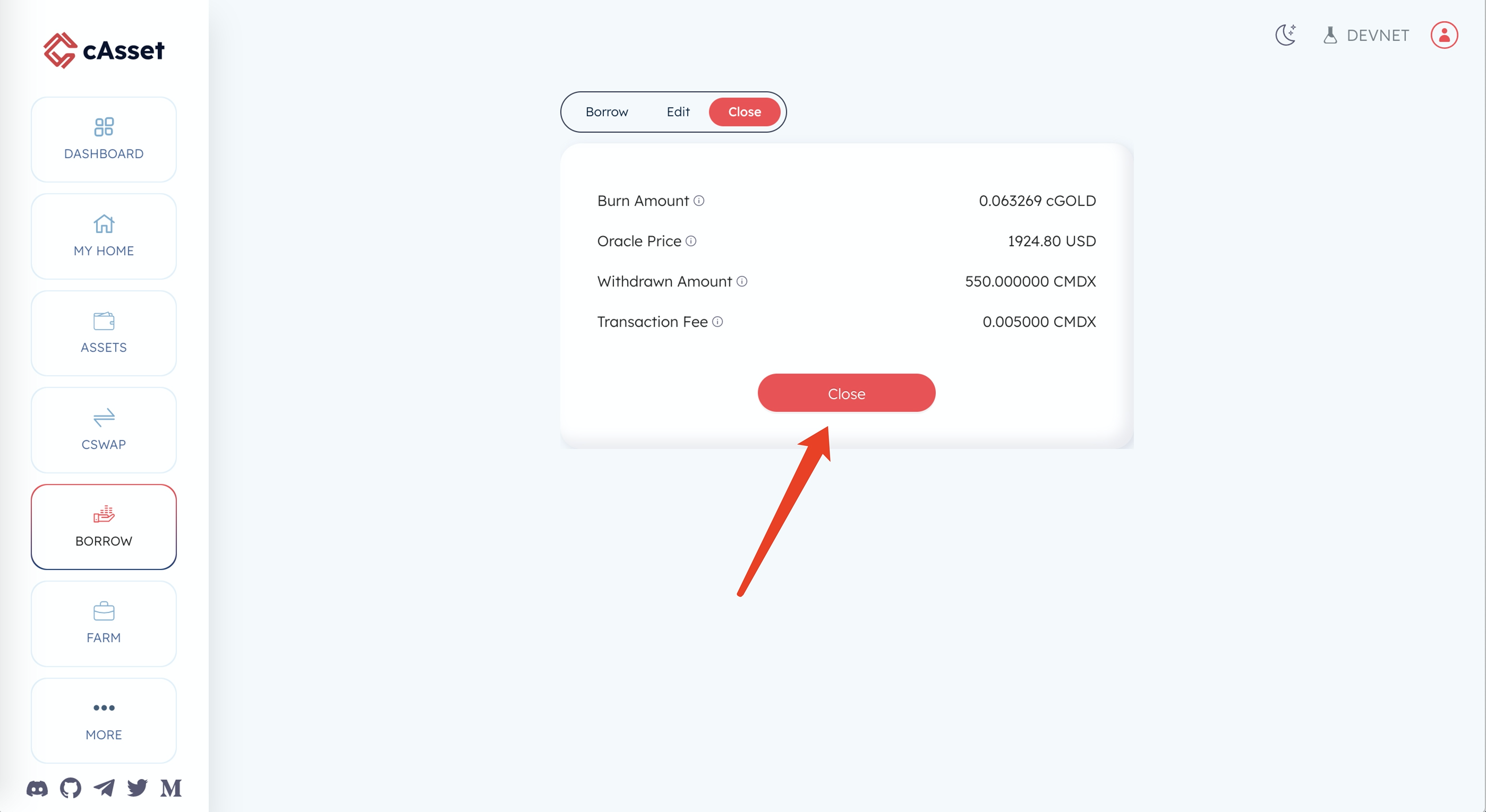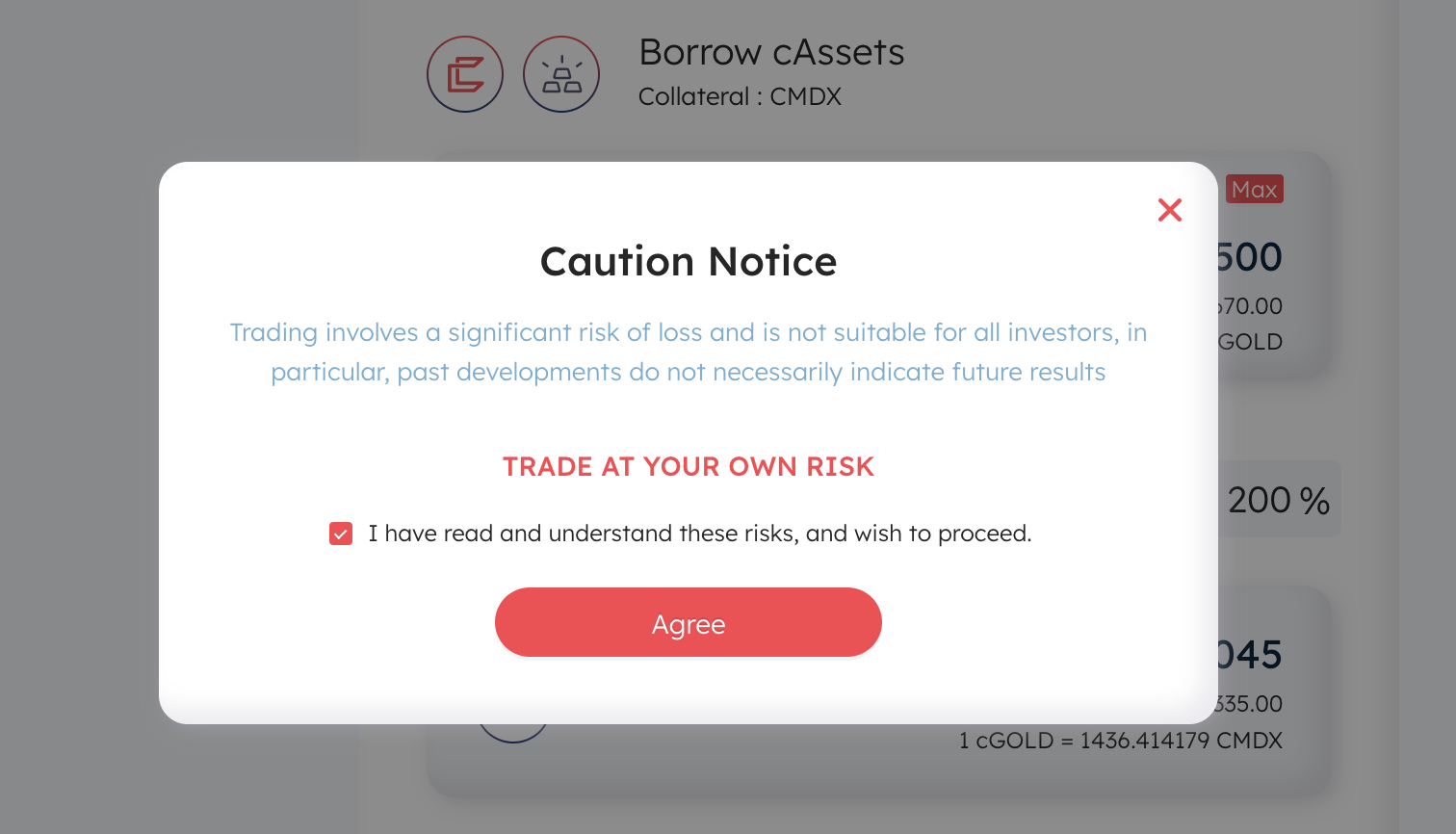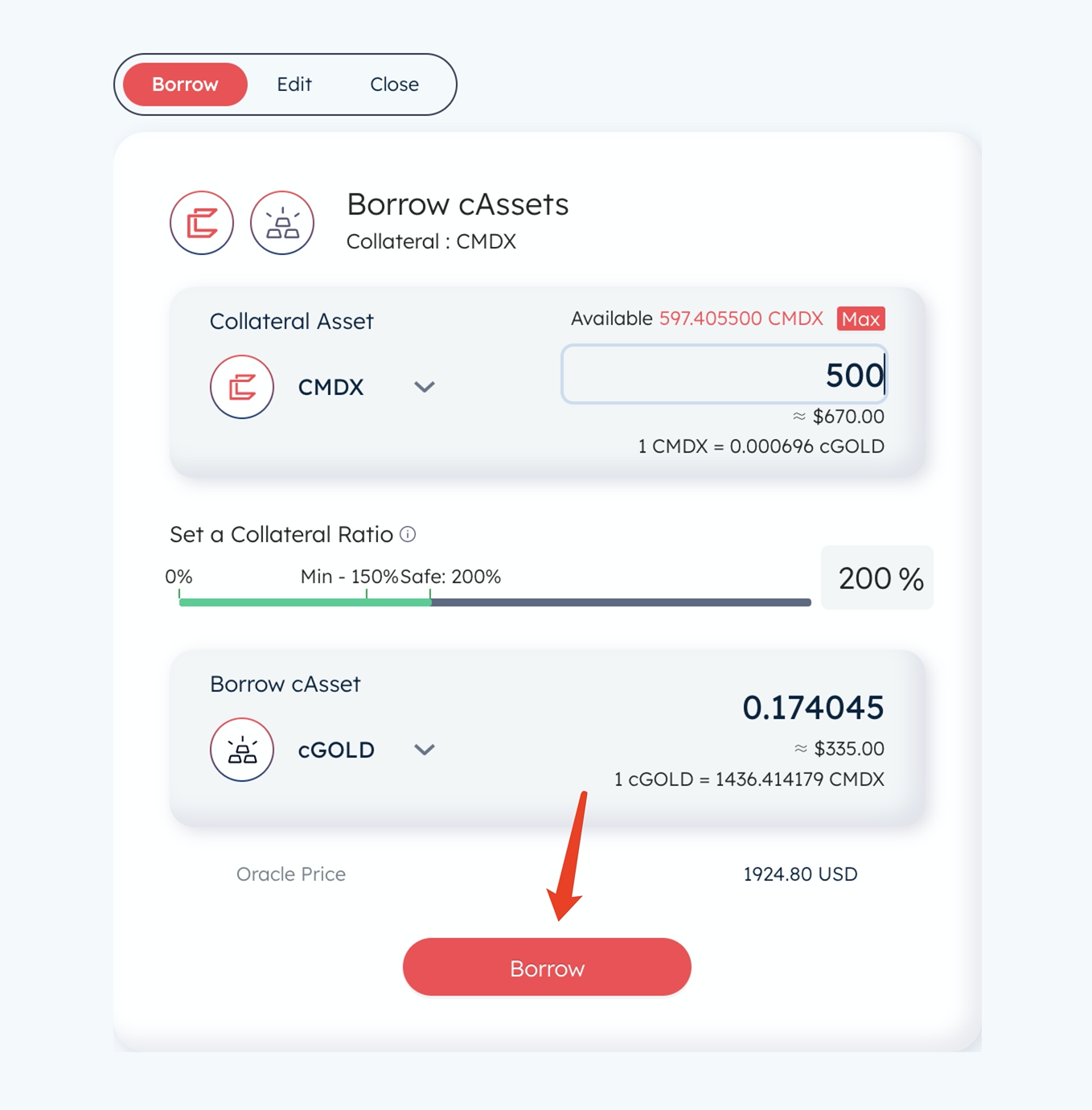 7 点击BORROW(抵押借款)所有币种全部操作。这里只用一个做为列子(数量500gas设置为2000000,不然容易显示气体不足)
