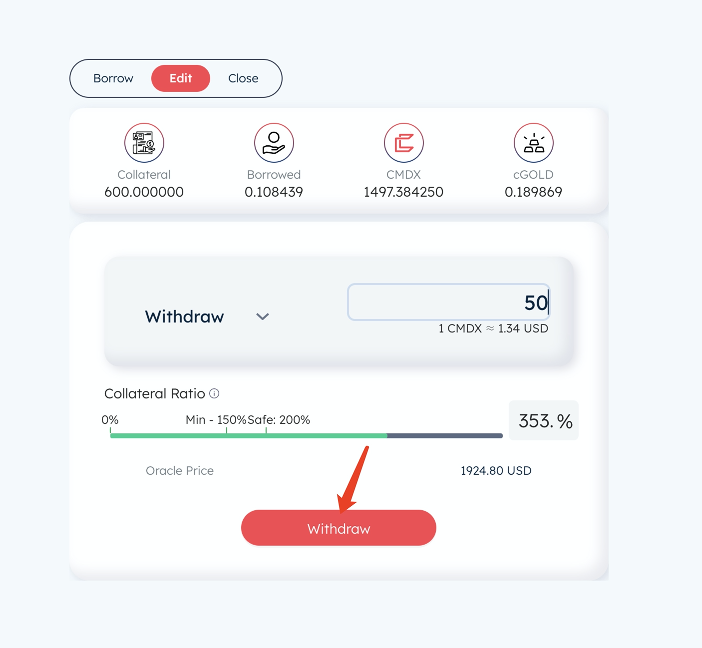 8 点击Edit,选择定金输入数量进行操作