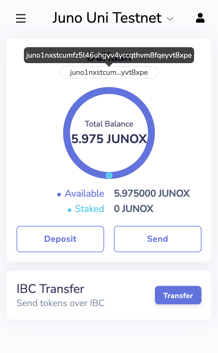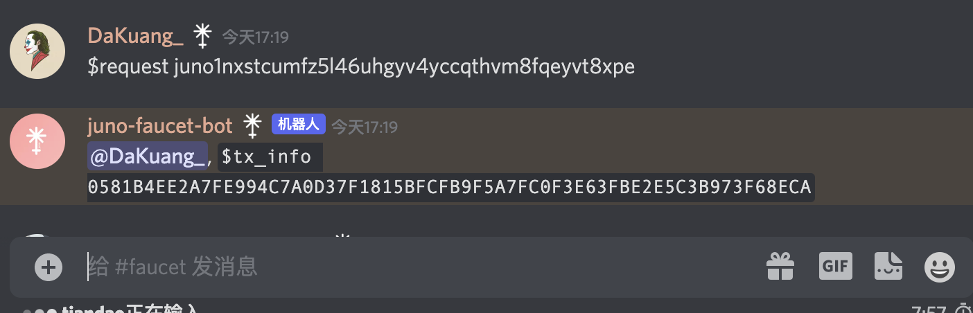 钱包地址前面加上请求指令($request)如$request juno1nxstcumfz5l46uhgyv4yccqthvm8fqeyvt8xpe