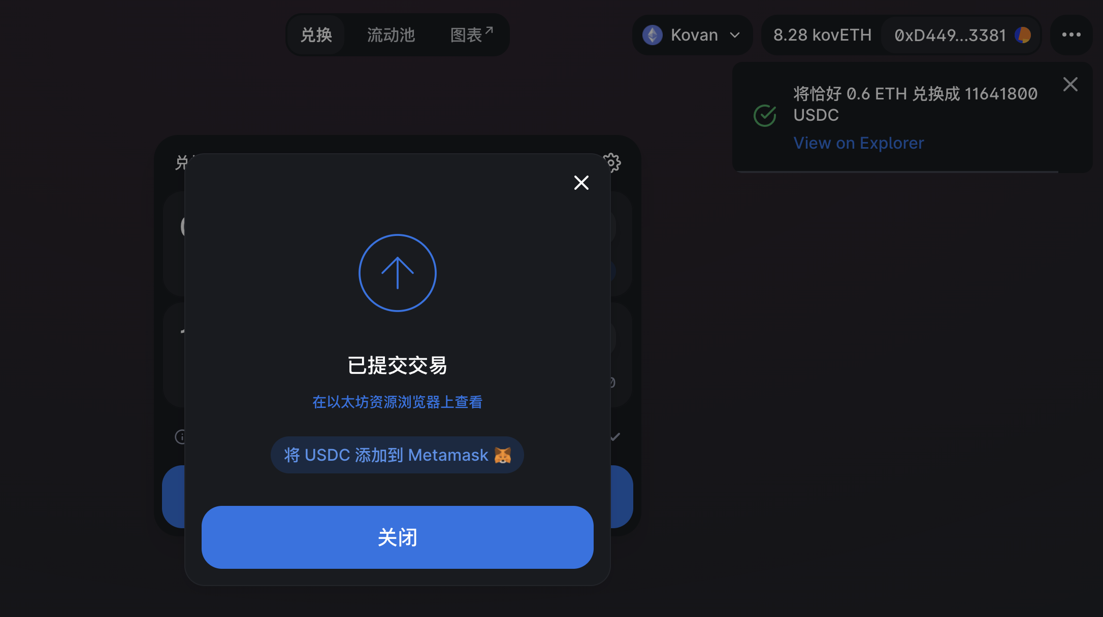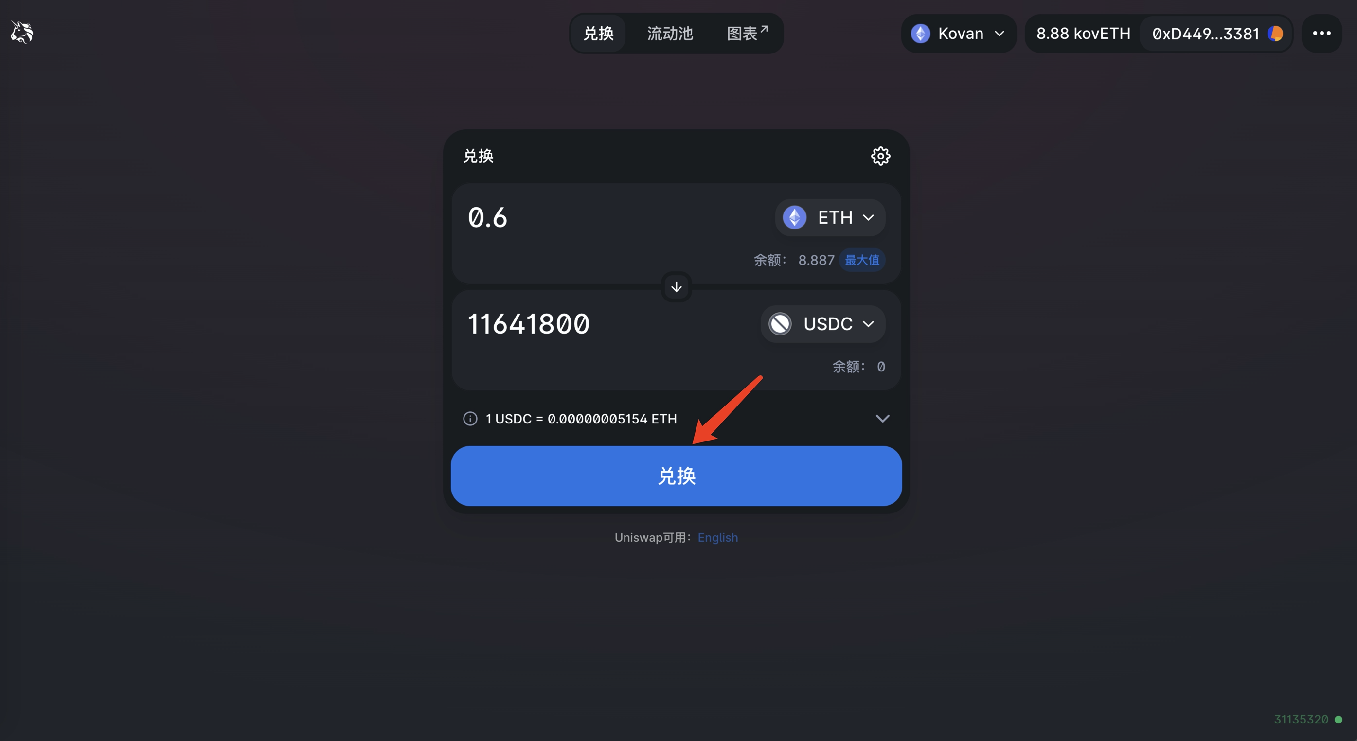 3 把测试ETH兑换成测试USDC(进入兑换网址,先连接钱包)