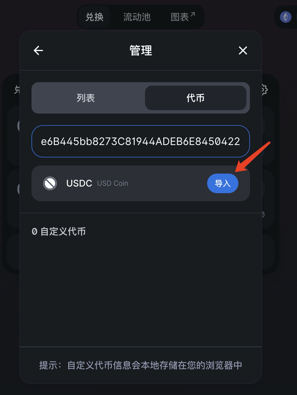 添加USDC 合约地址:0xe22da380ee6B445bb8273C81944ADEB6E8450422
