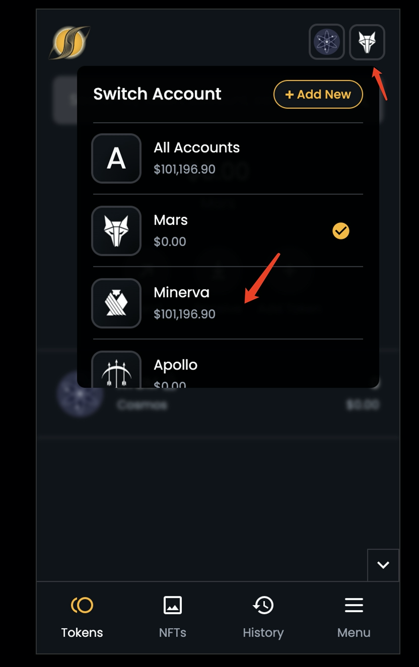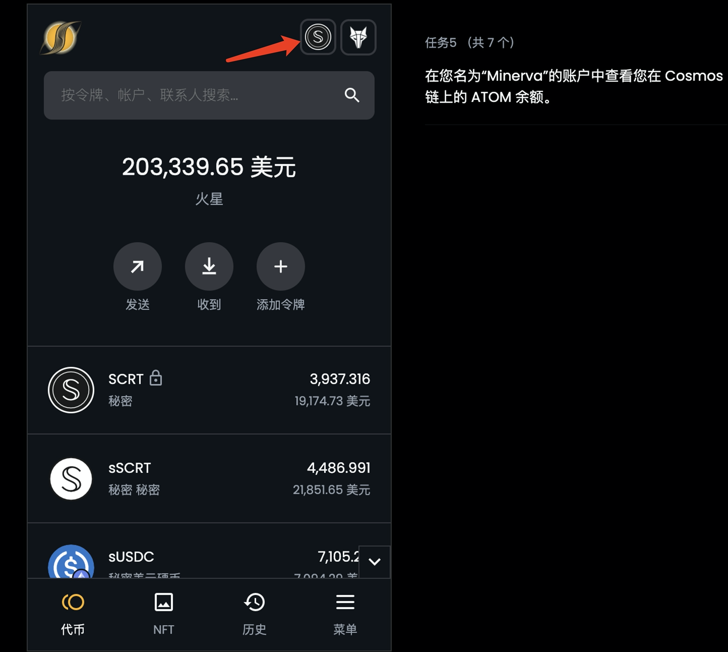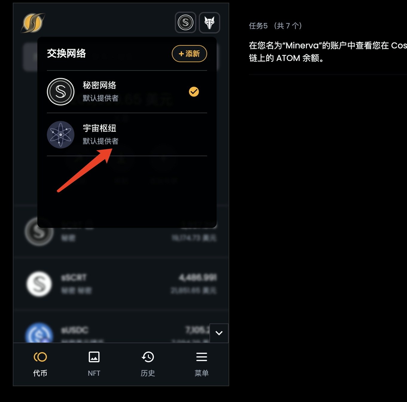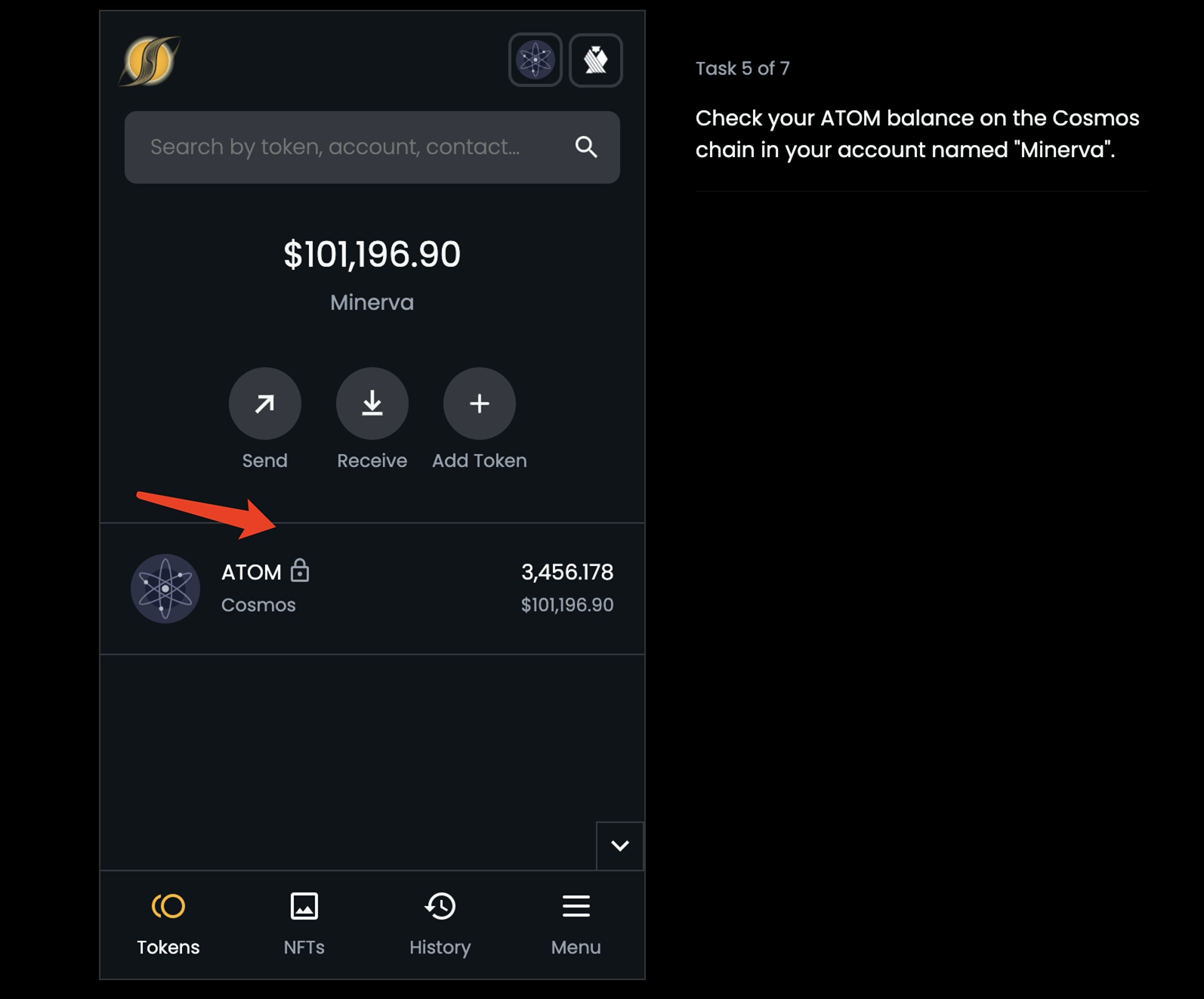 10 Minerva的账户中查看您在 Cosmos 链上的 ATOM 余额。