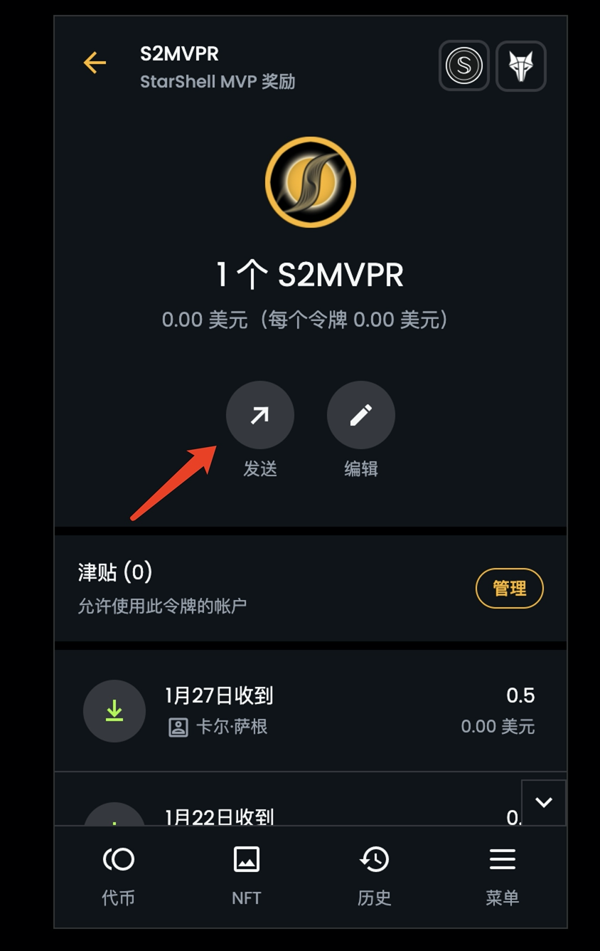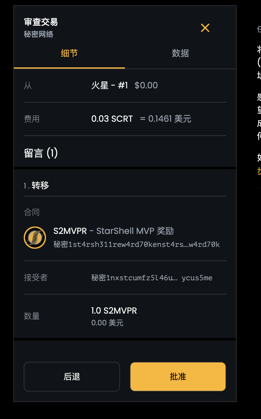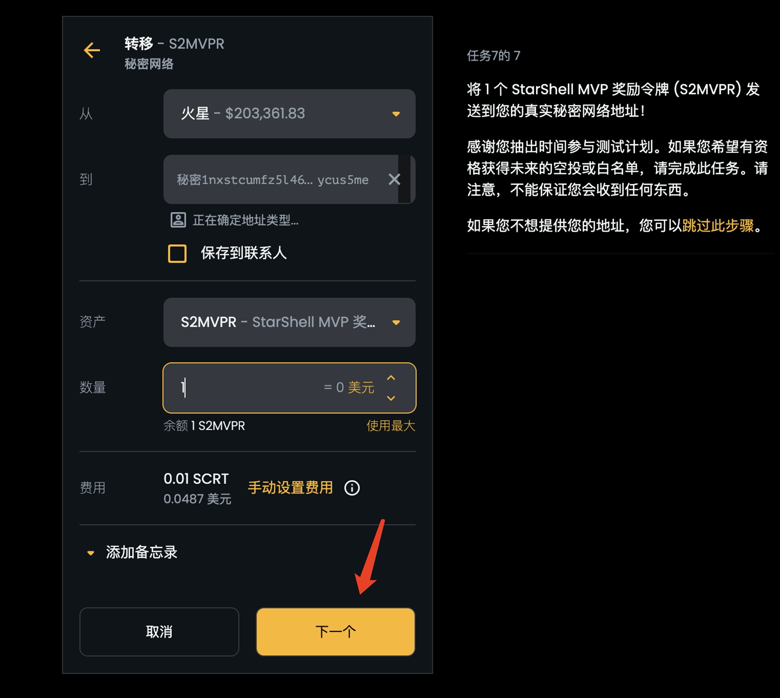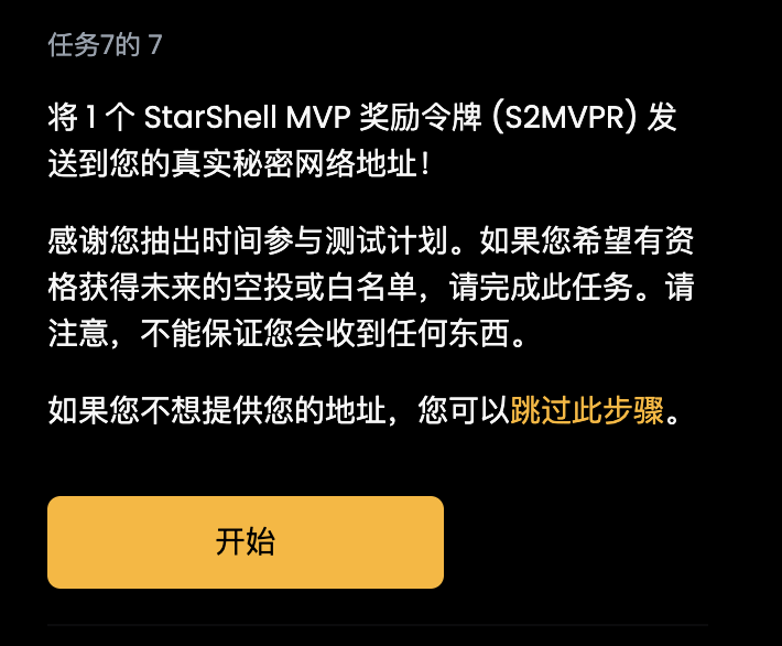 12 将 1 个 StarShell MVP 奖励令牌 (S2MVPR) 发送到您的真实秘密网络地址!