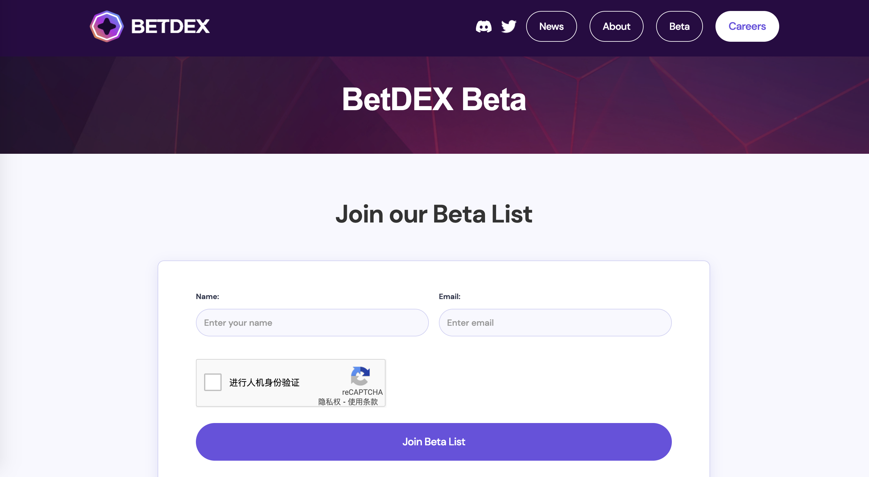 加入betdex测试填写名字和邮箱即可 betdex.com/beta-list