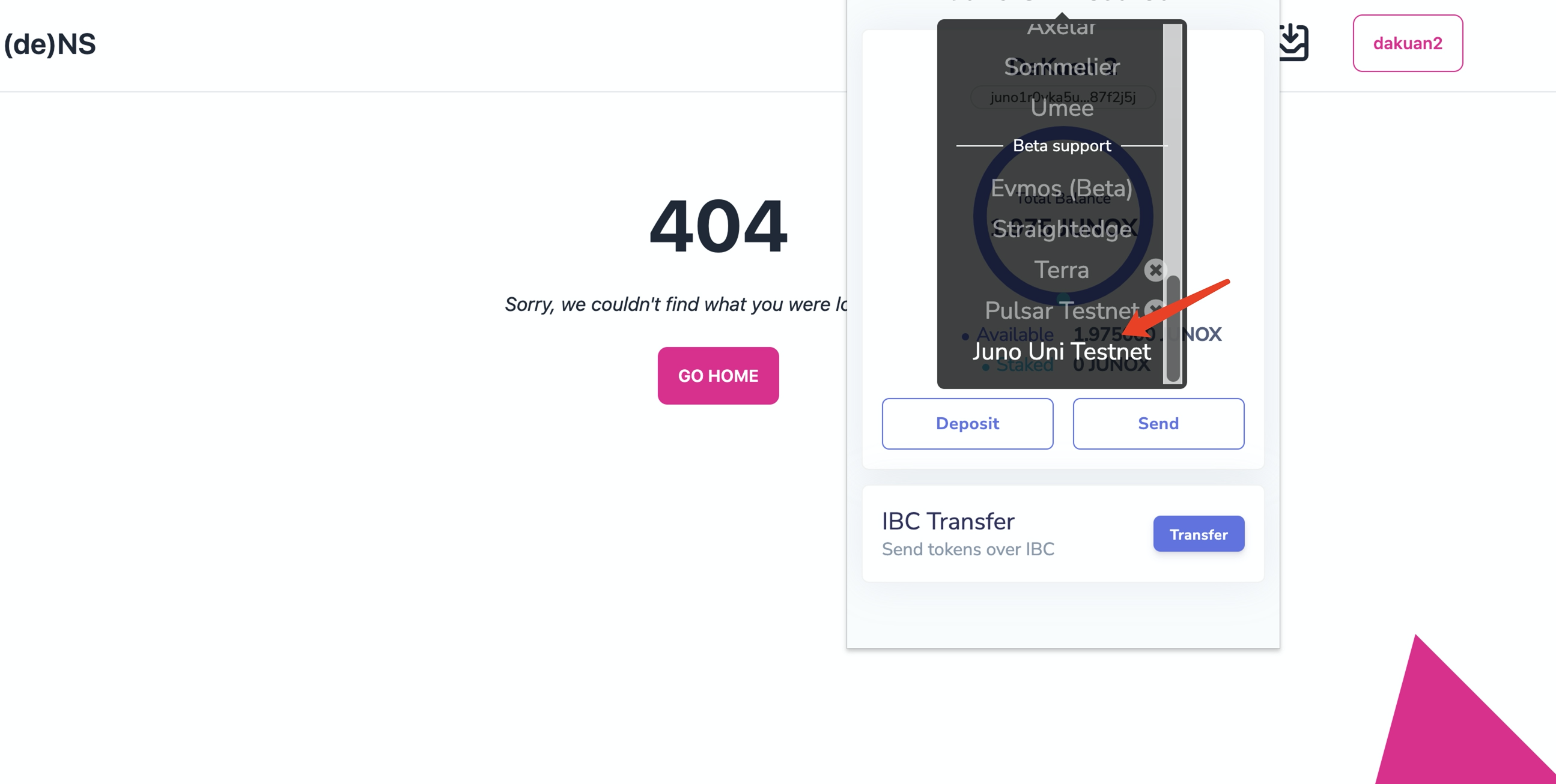 进入https://dens.vercel.app/ 连接钱包 切换juno测试网络