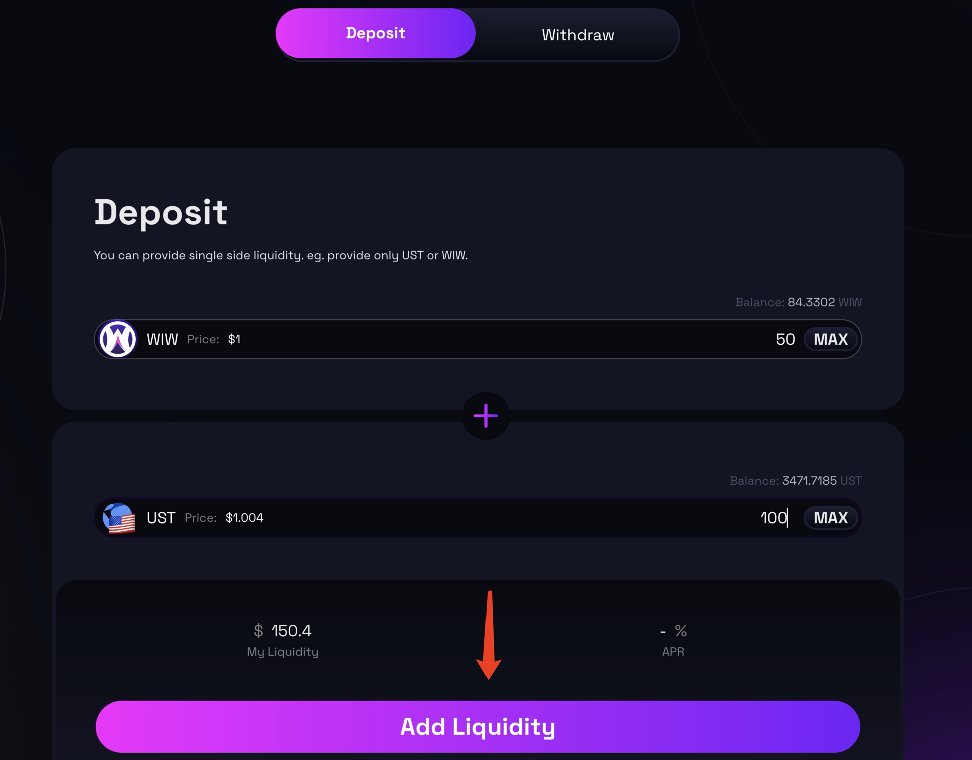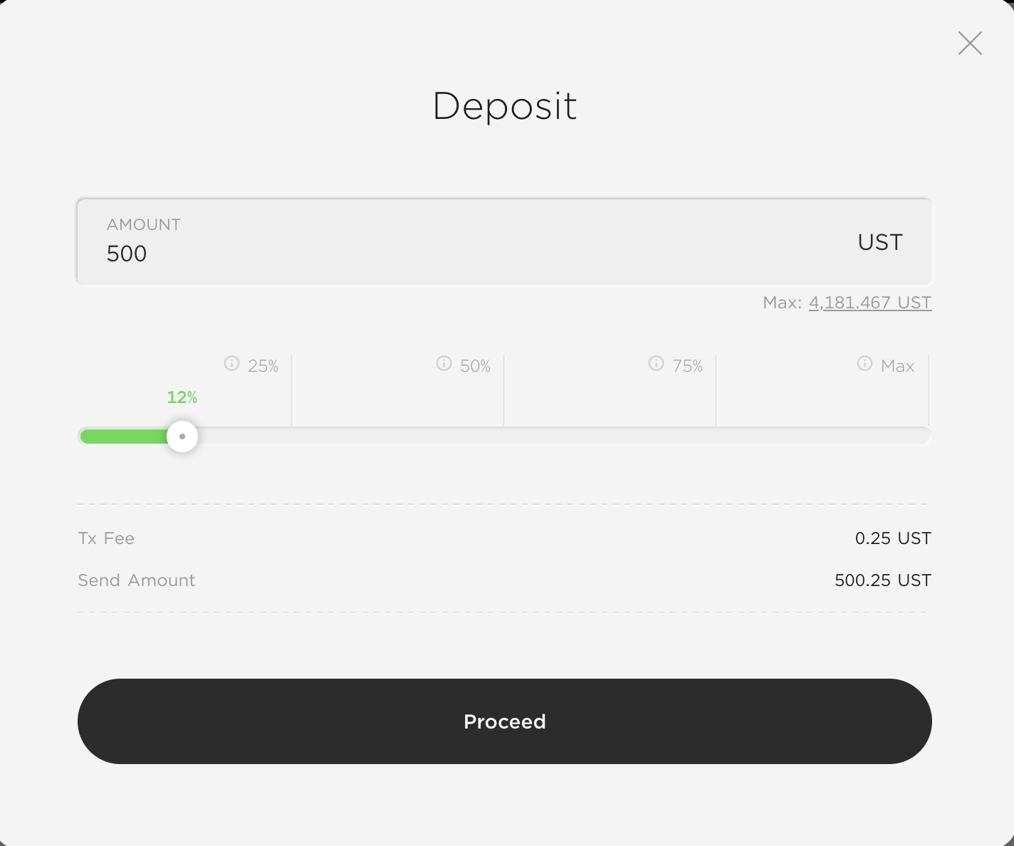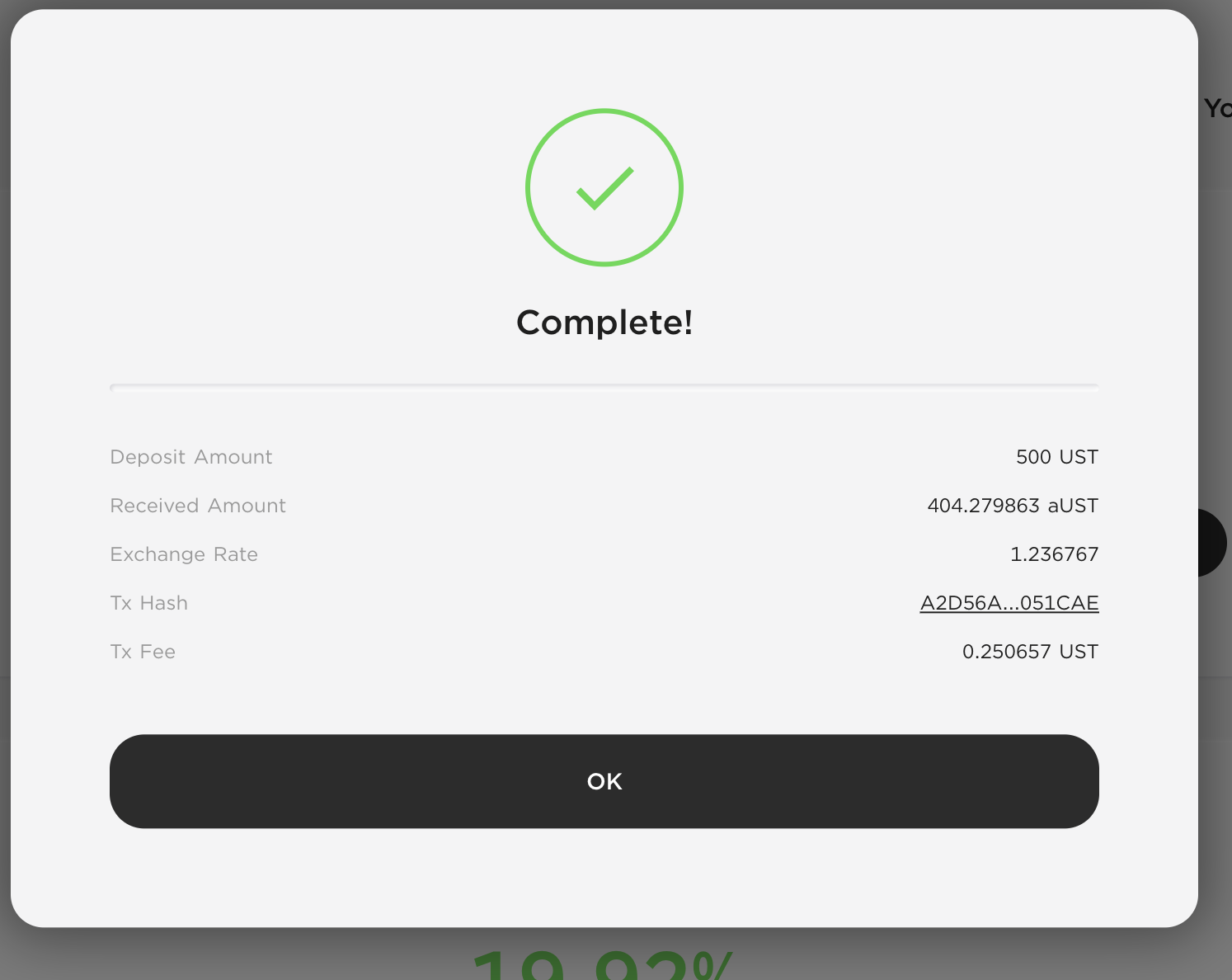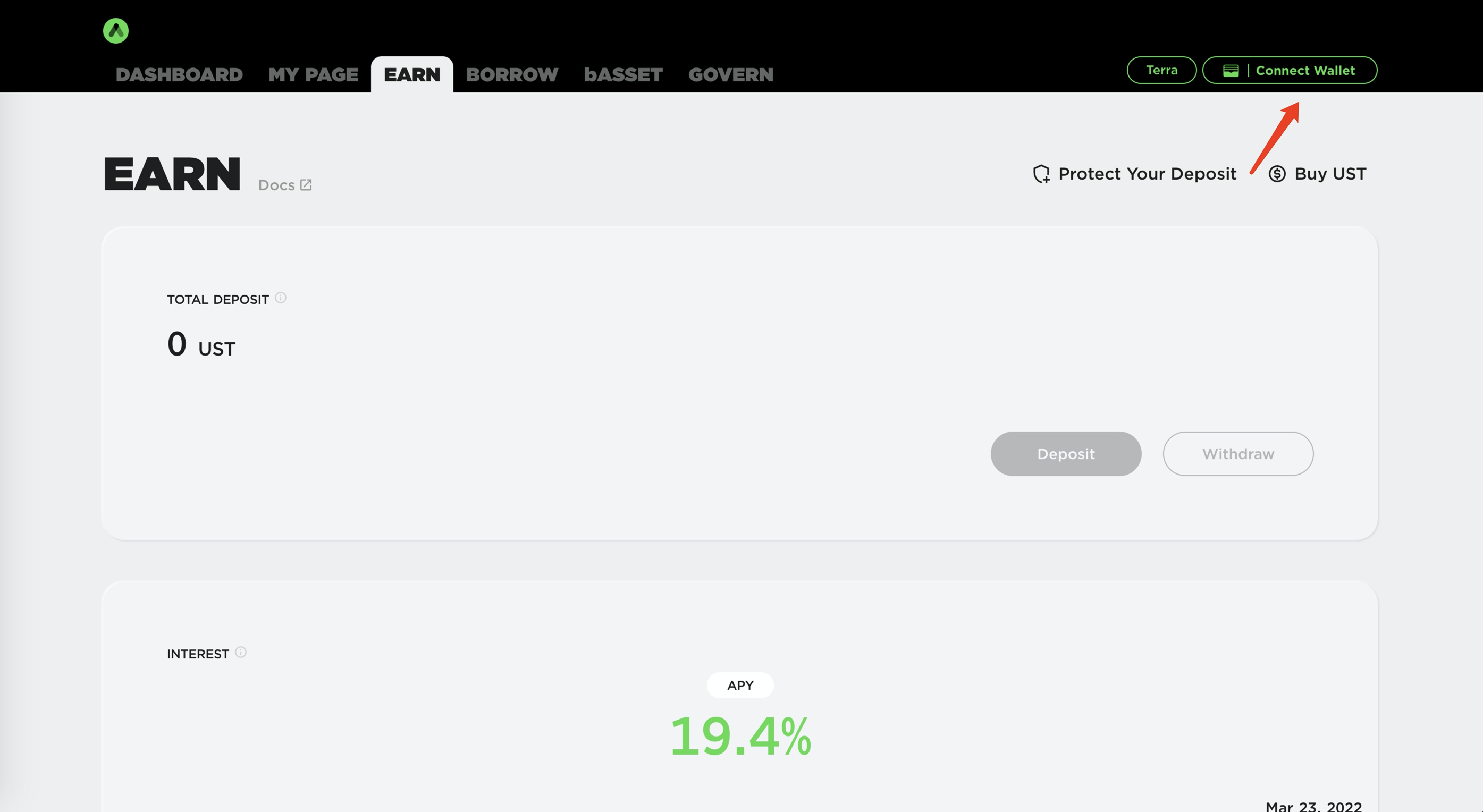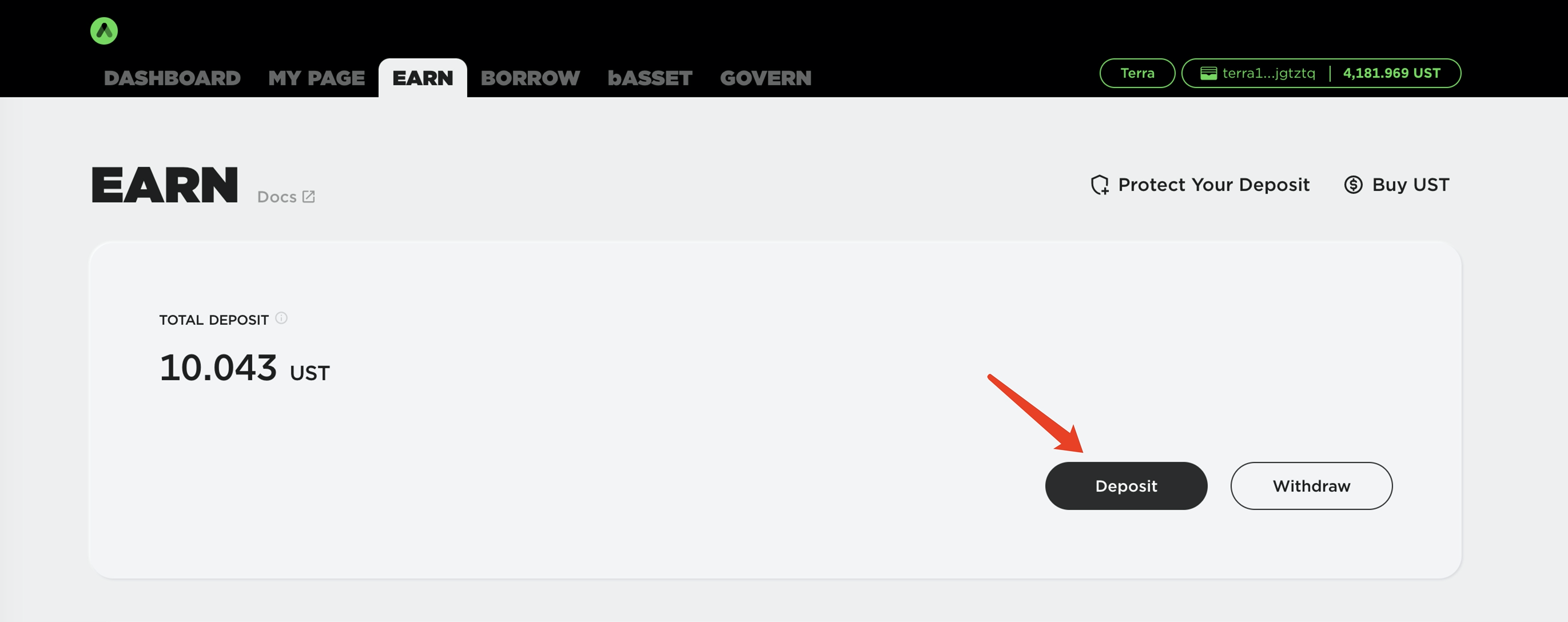5 将UST 存入锚协议,进入https://app.anchorprotocol.com/earn(确保将您的钱包设置为测试网以获得 aUST)