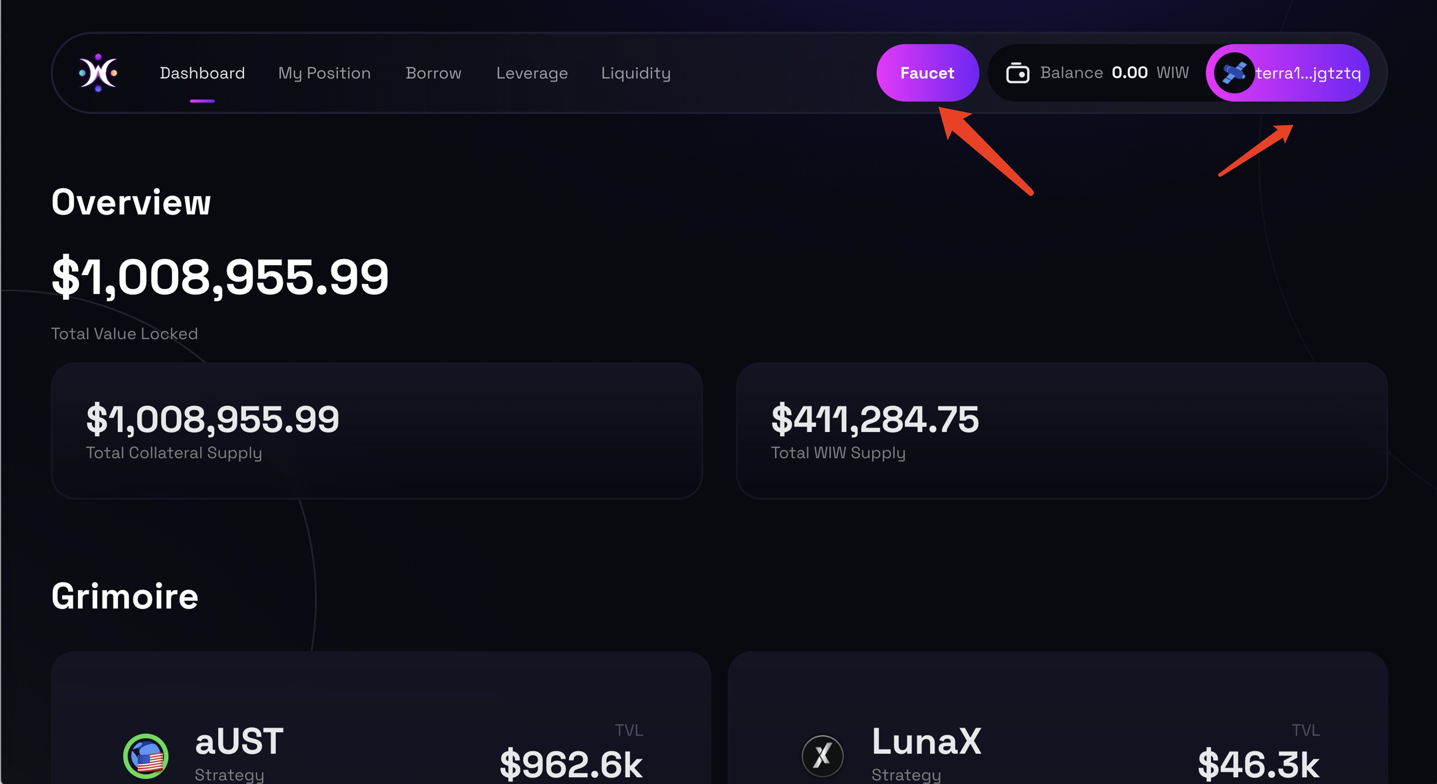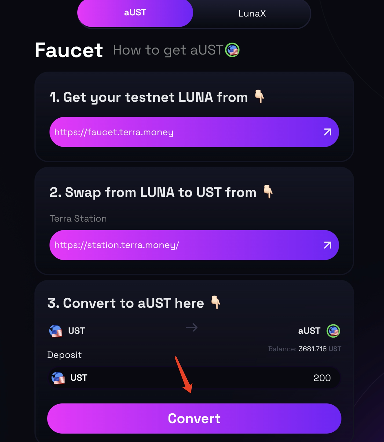 6 或者进入测试网水龙头获取测试网版本中的 aUST(先连接钱包)
