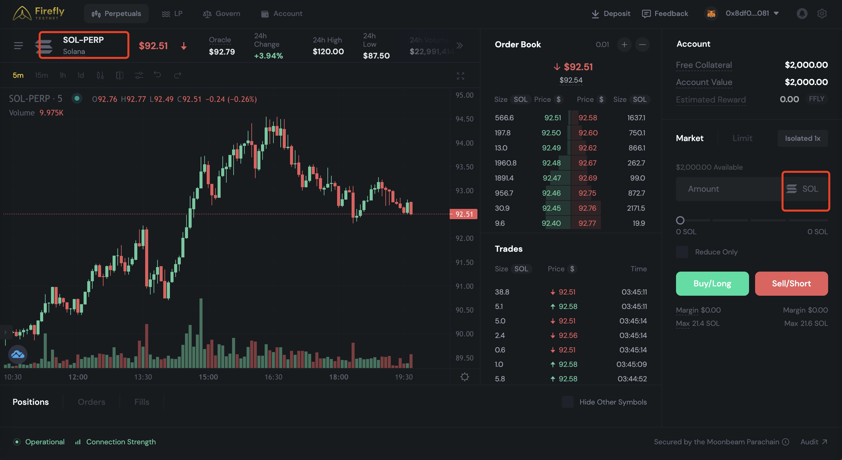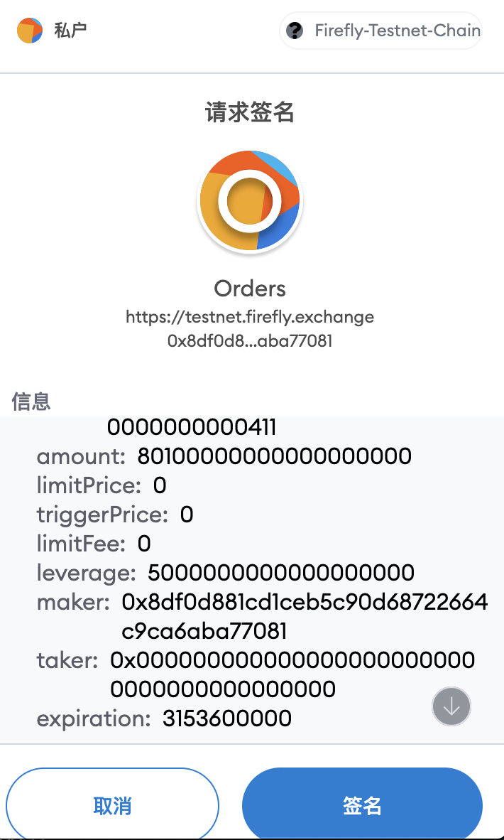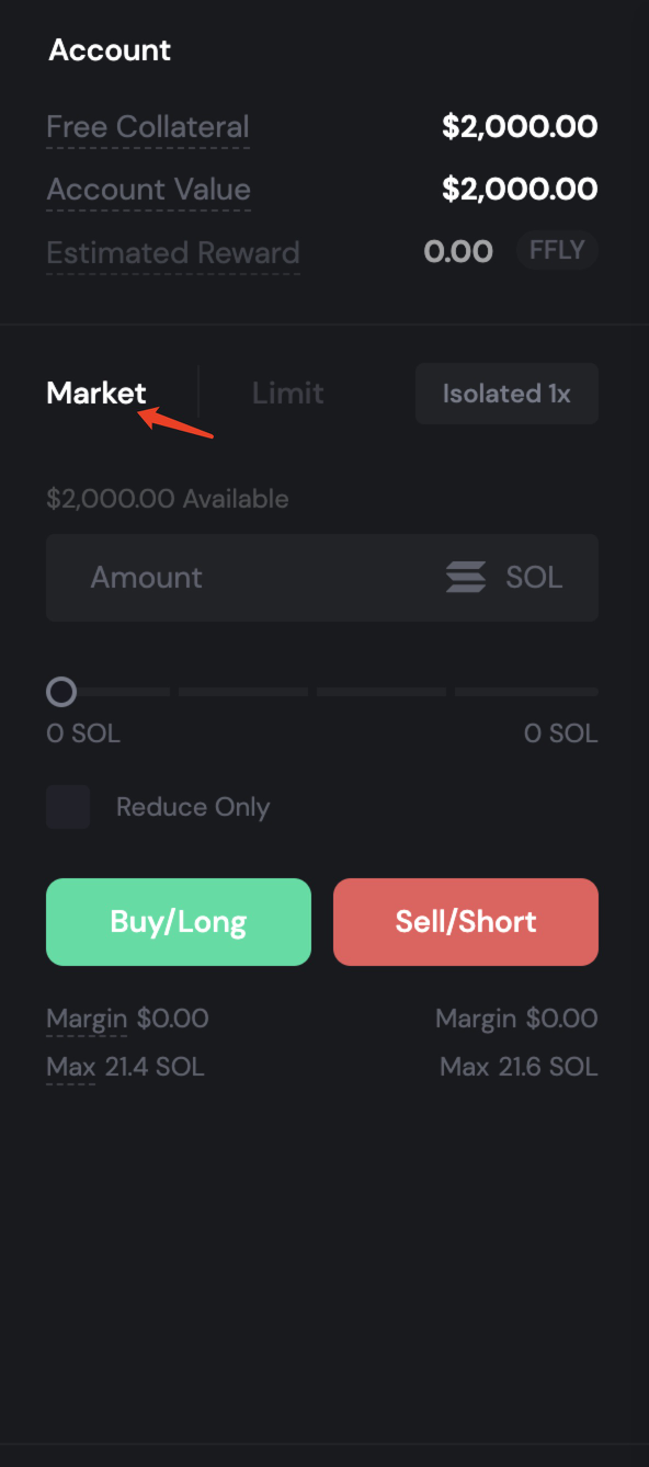 9 开单做合约 目前Firefly 支持市价单(Market)和限价单(Limit),这里我们选择市价market