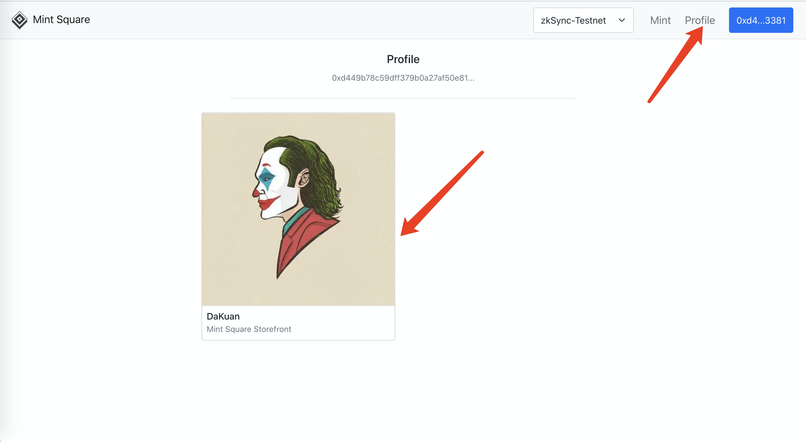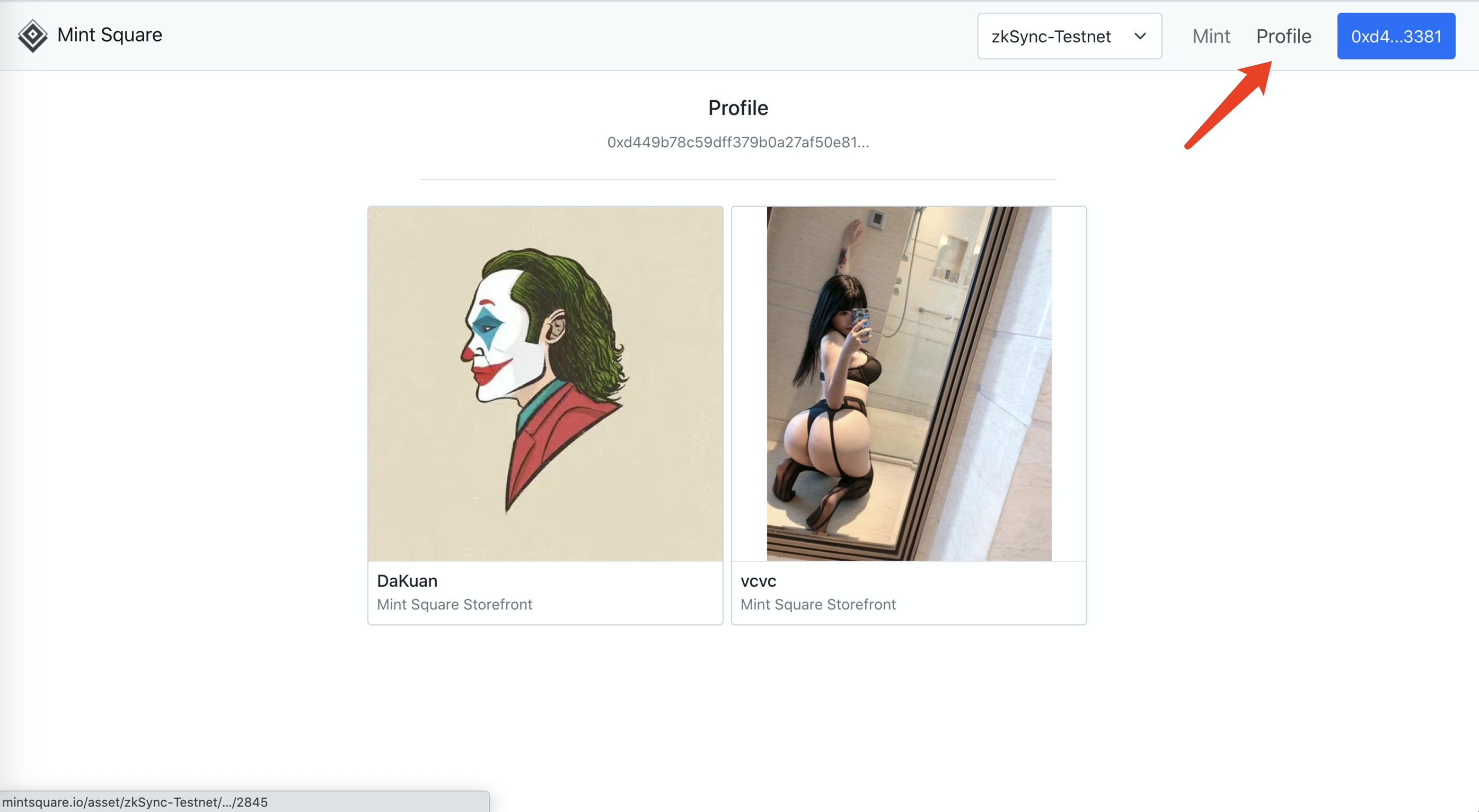 5 点击右上角Profile,可以看到MINT的NFT,点击你的NFT