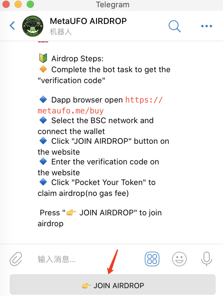 5 在电报机器人按“👉JOIN AIRDROP”加入空投