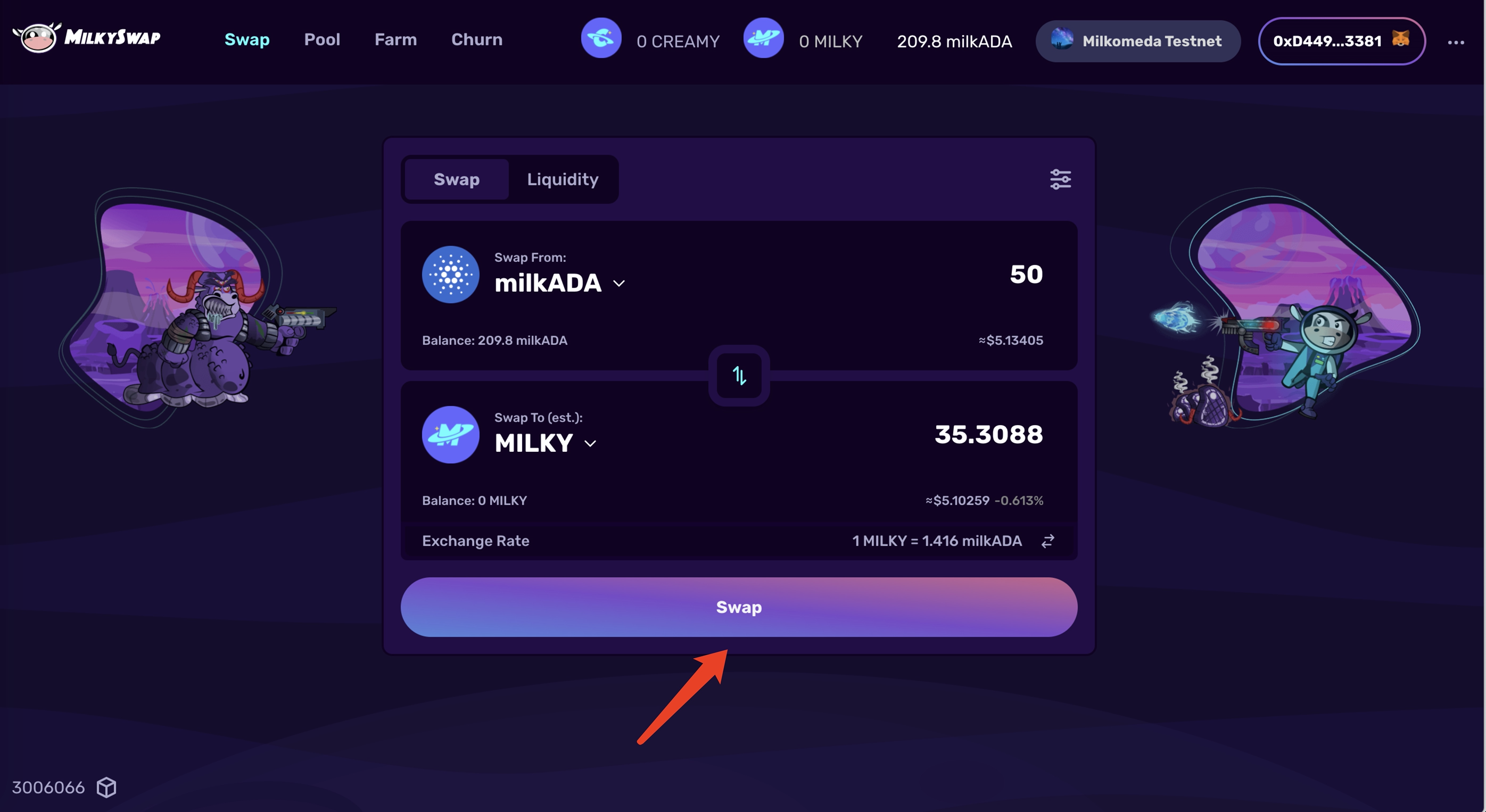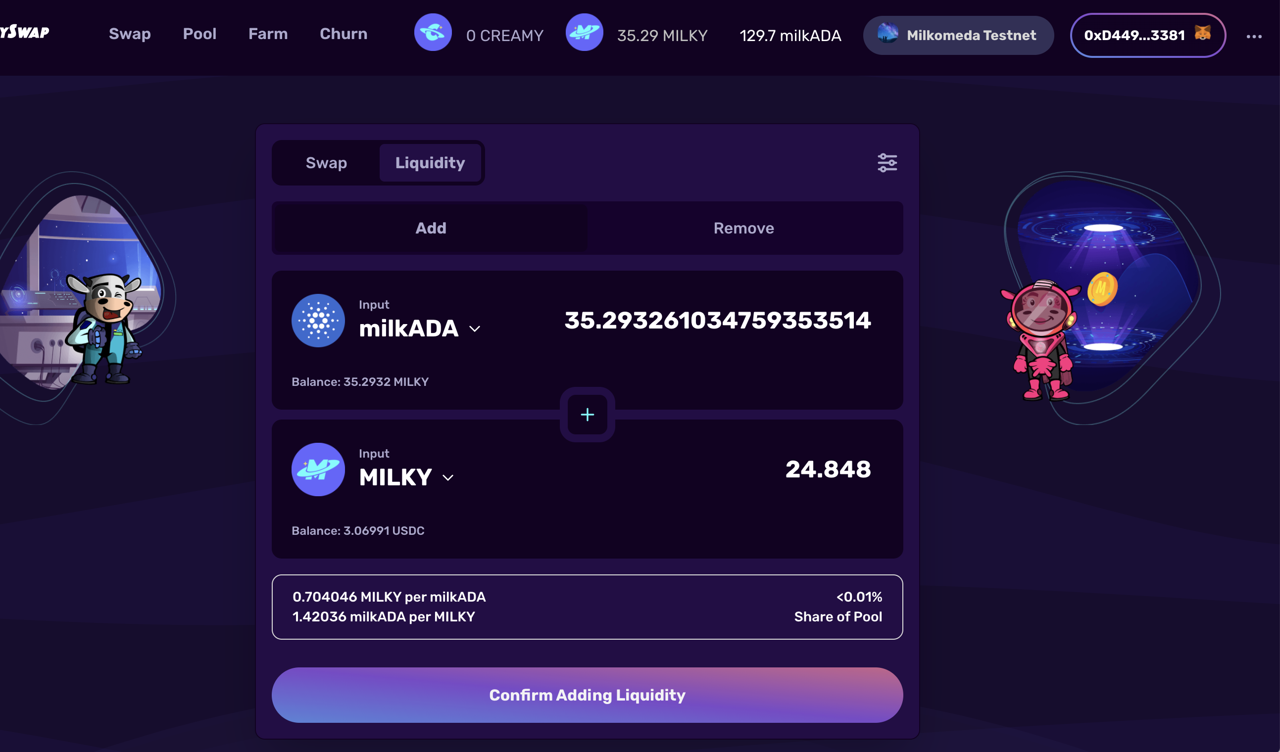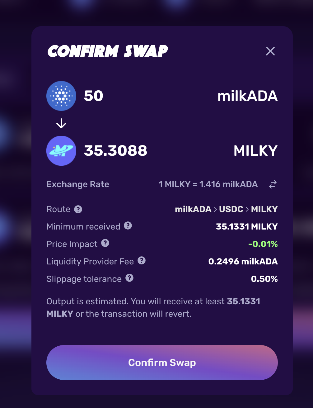 MilkySwap 是基于 Milkomeda 侧链为 Cardano 定制的去中心化交易所。MilkySwap 允许您以低费用、更快的交易时间和最小的滑点交换代币,同时还使您能够将 Cardano 代币与以太坊连接起来。MilkySwap 采用了 SushiSwap 和 CurveDAO 的耕作相结合的耕作模式