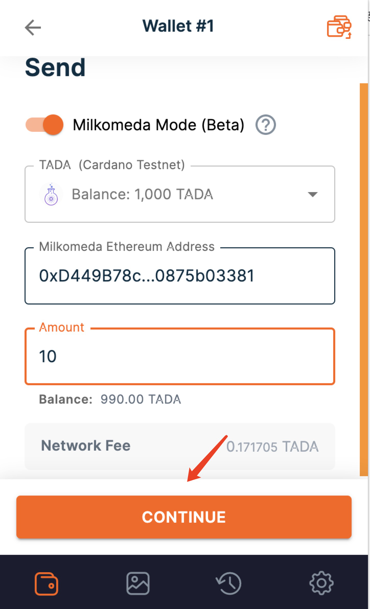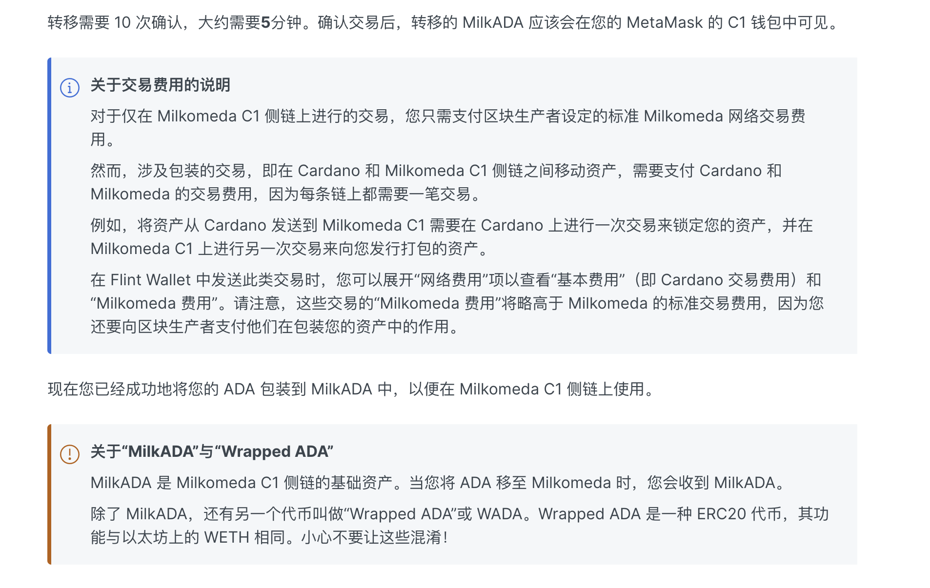 8 转移需要 10 次确认,大约需要5分钟。确认交易后,转移的 MilkADA 应该会在您的 MetaMask 的 C1 钱包中可见。