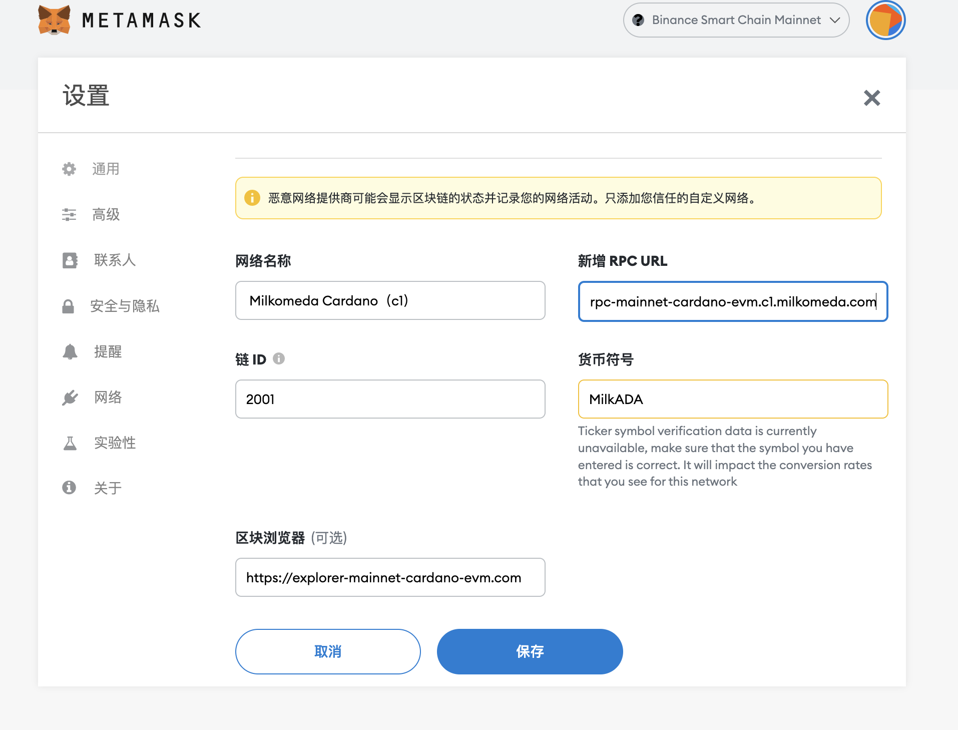 阻止资源管理器 URL(可选):https://explorer-mainnet-cardano-evm.com