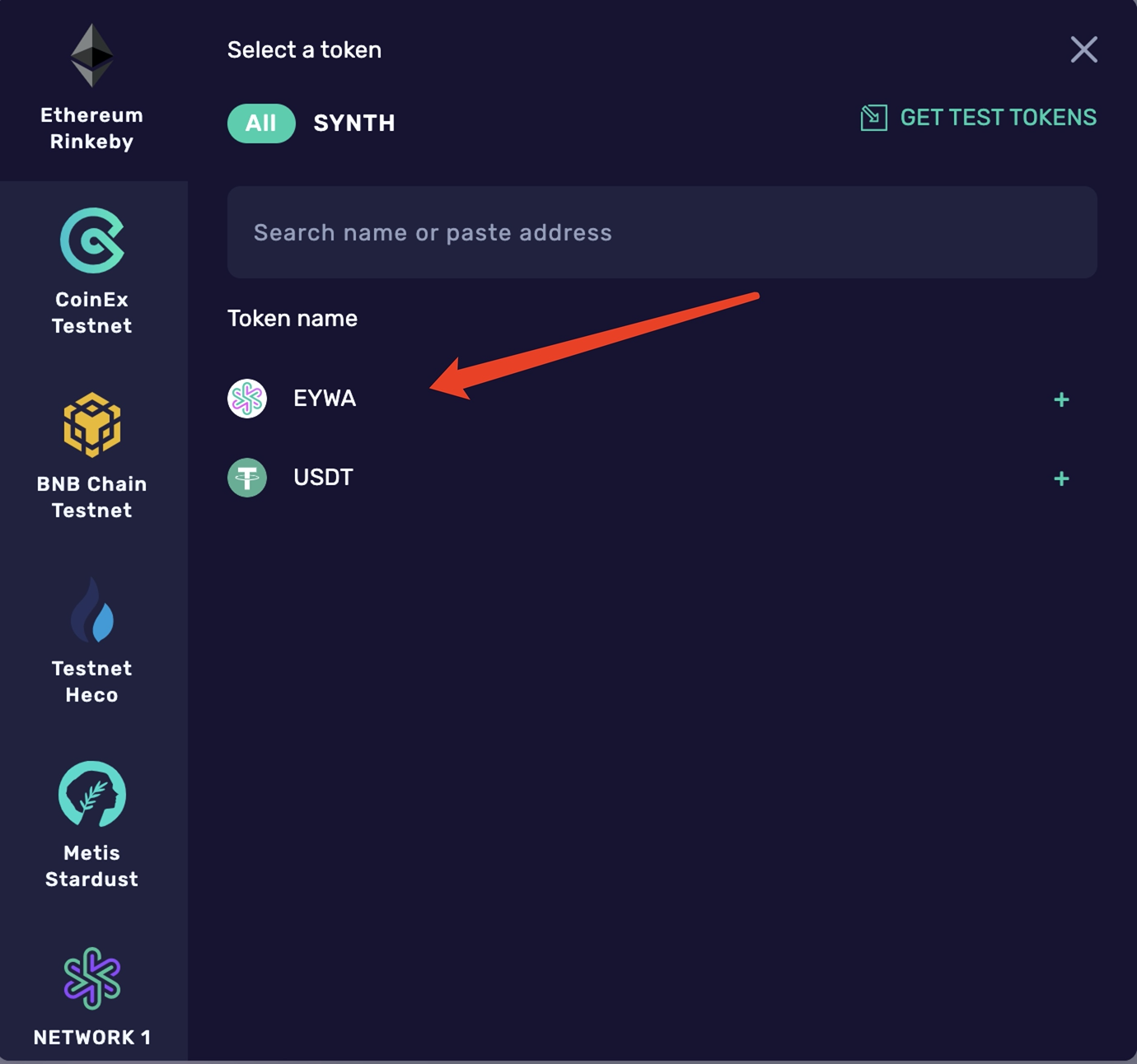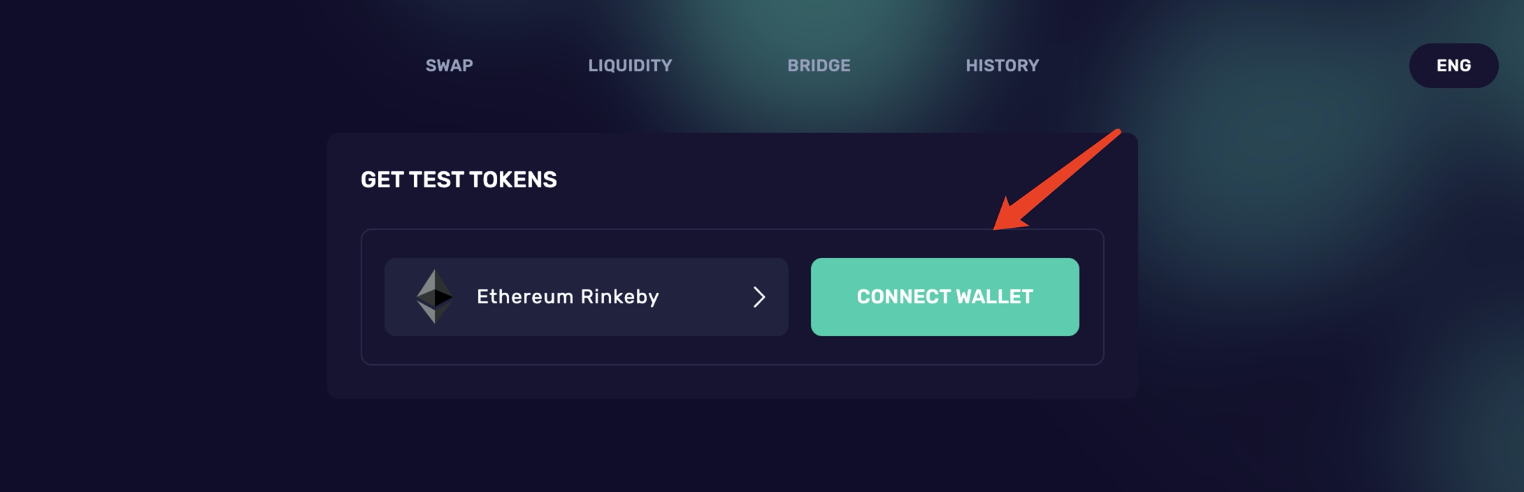 再领取EYWA测试币(点击GET TEST TOKENS) 连接钱包