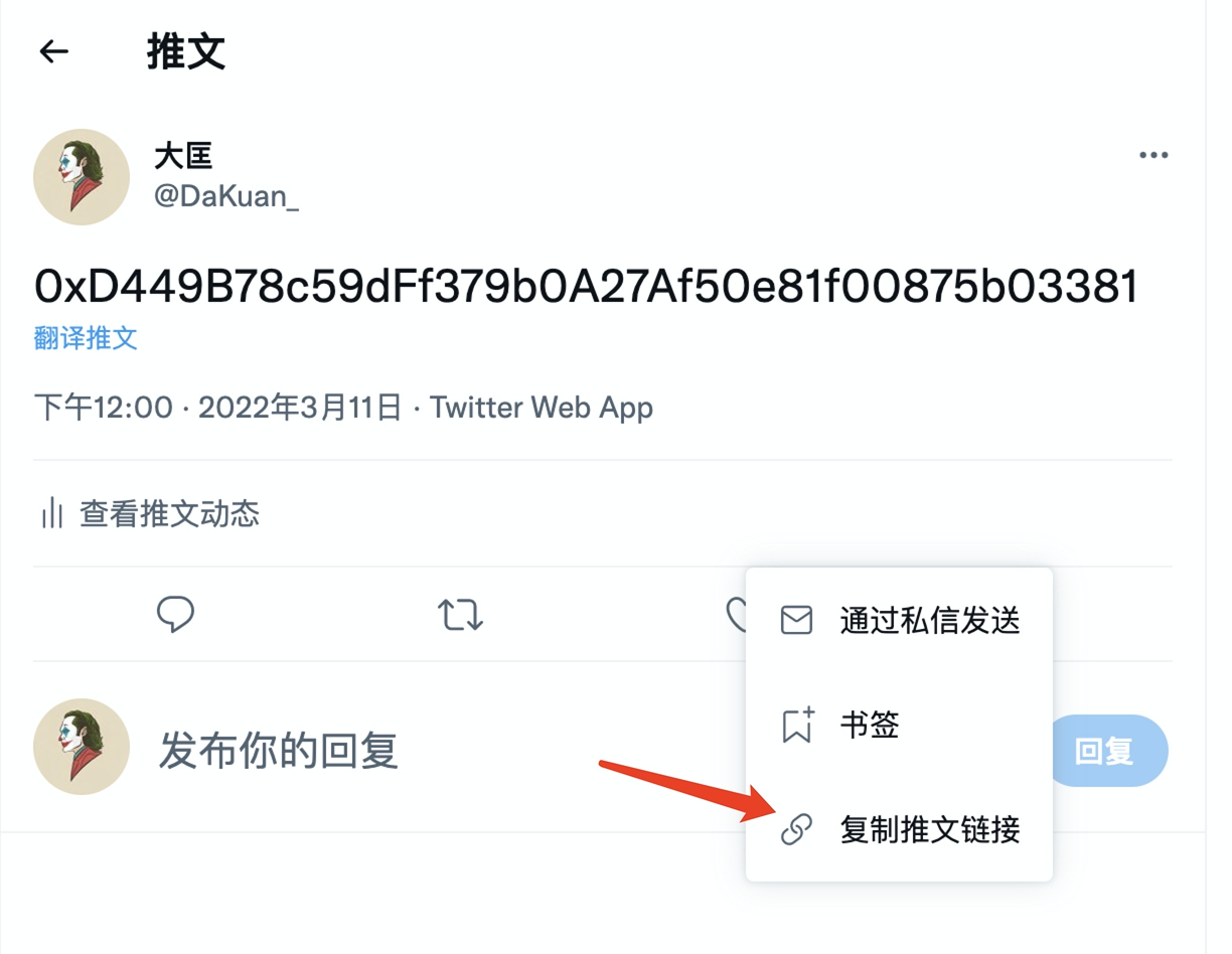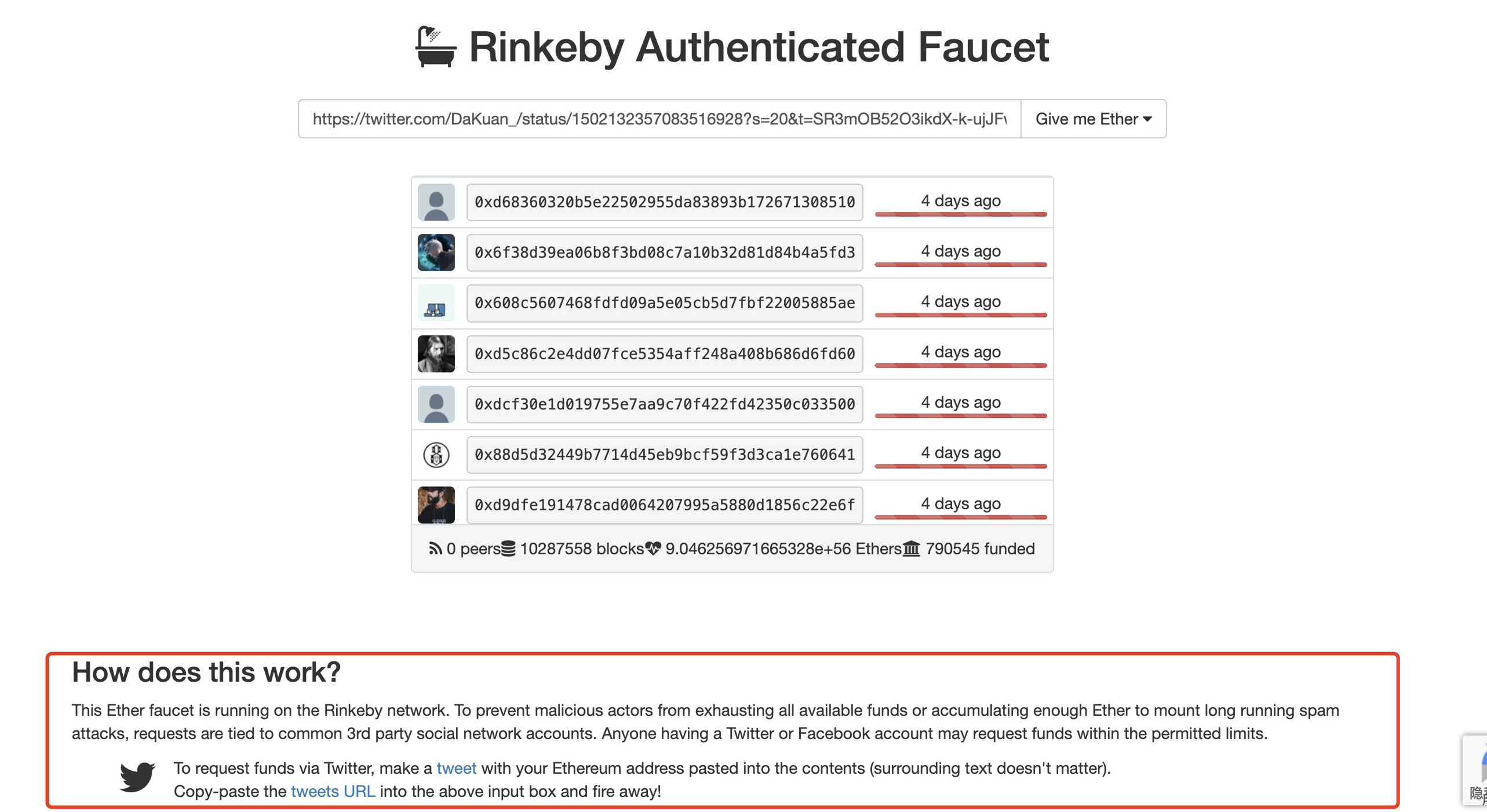 2)先领取Rinkeby测试币(复制钱包地址发送推文,复制推文链接)