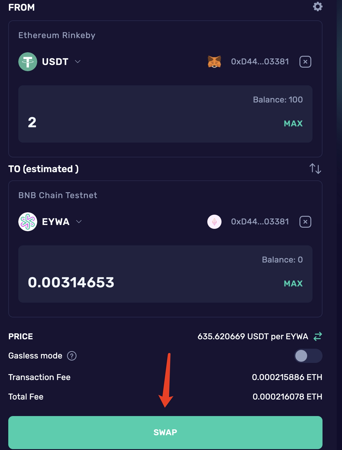 EYWA 消除了在跨链操作期间为不同资产支付多种费用的需要。EYWA Multichain Gasless 允许您选择在交易期间将在哪种资产中支付所有费用。
