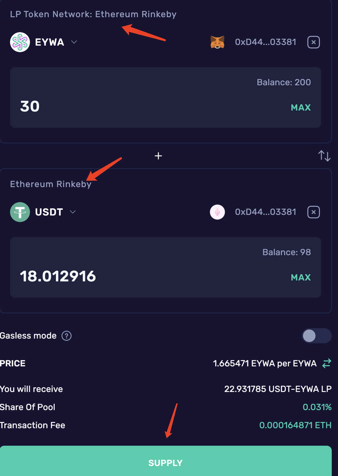 导入代币EYWA合约地址:(0xA9A689d9A0C7a018FAacd90662acE690Fb09a623)usdt(0x77c24f0Af71257C0ee26e0E0a108F940D1698d53)