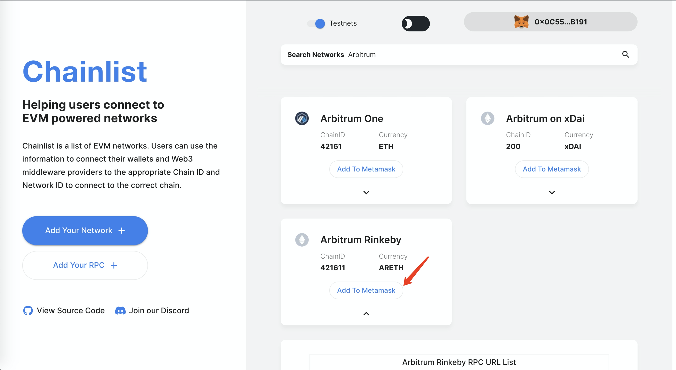 Arbitrum Rinkeby 网络余额是0,以为水龙头领取的是Rinkeby测试网络的ETH