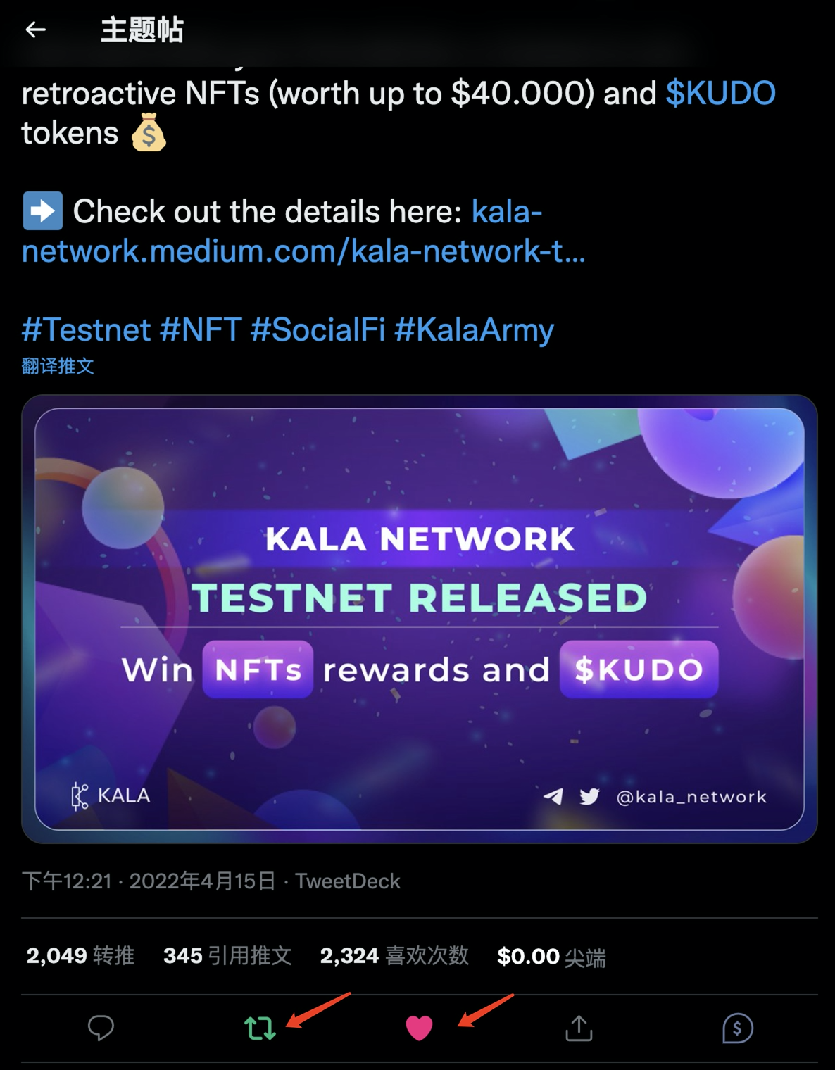 KALA Network是一个Web3 SocialFi 平台,允许用户通过与他们的朋友和社区进行社交来赚取$KUDO代币。使用$KUDO / $KLNW购买NFT PENCIL / PEN以增加收入、升级和铸造新的NFT PEN。内置GameFi元素,用户可以有自己的策略来使用NFT PEN / PENCIL