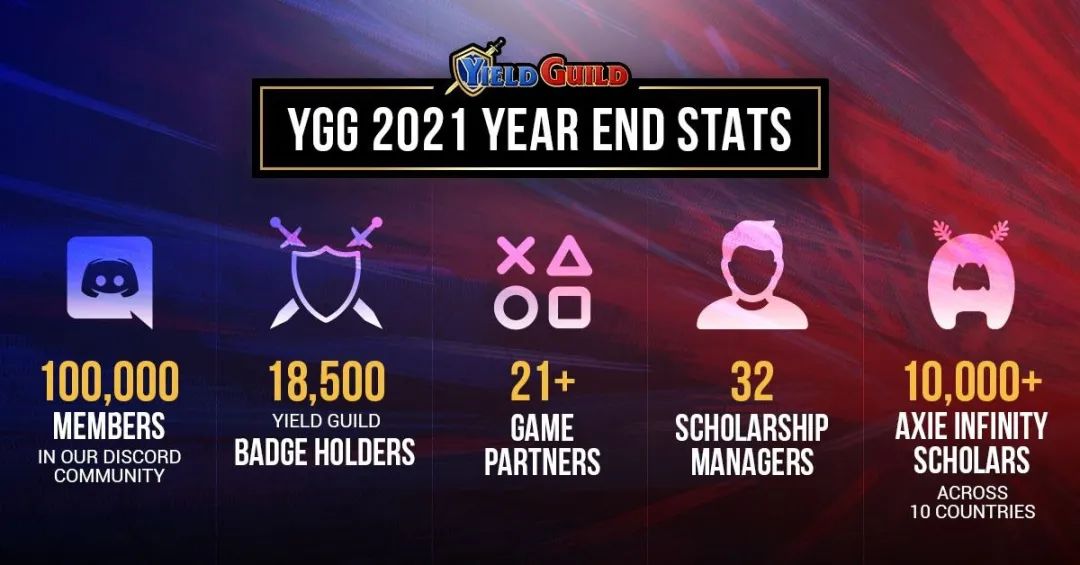 Axie Infinity作为2021年风靡全球的链游,带火了P2E以及公会模式。公会为游戏玩家提供了良好的社区基础,玩家们可以在同一屋檐下讨论游戏机制、如何保持游戏中的竞争力。其实,每一个链游都需要公会的存在,公会也可随着链游热度的冷却而自行解散。其中,能持续发展的主要是大型公会,大型公会指拥有大约 1,000 及以上帐户的公会。大型公会规模庞大以及资金充足,它们探索新游戏,并于早期积累游戏资产以及进行相应的投资。他们着眼于3-5年长期的收益,而非短期的每日收益。YGG、Merit Circle、Unix Gaming、Guildfi就是此类公会。